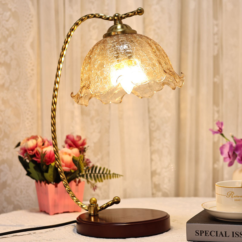 女の子向けネットセレブ風ベッドサイドランプ 軽奢でシンプルなモダンな寝室・リビングルーム用 フレンチレトロクリスタル銅製ランプ 雰囲気ランプ