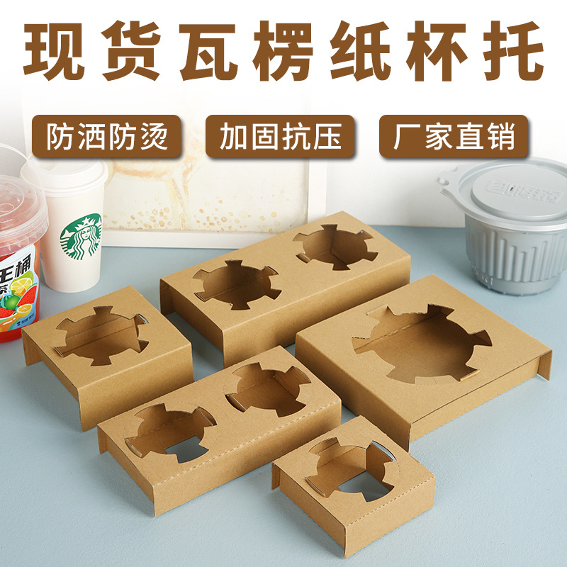 ブラック4カップ使い捨てクラフト紙段ボールカップトークミルクティーカップコーヒーカップ飲み物テイクアウトパッケージカップホルダー現物