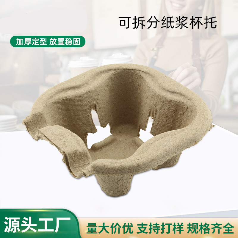 スポット卸売り分解性パルプ単杯托一回限りの出前包装底托杯棚は環境保護杯托を厚くする