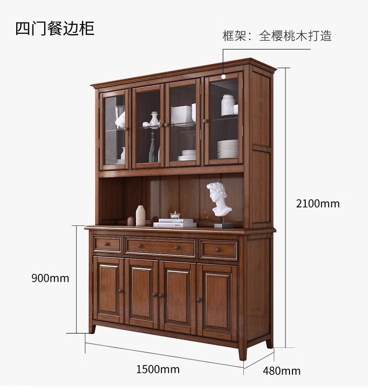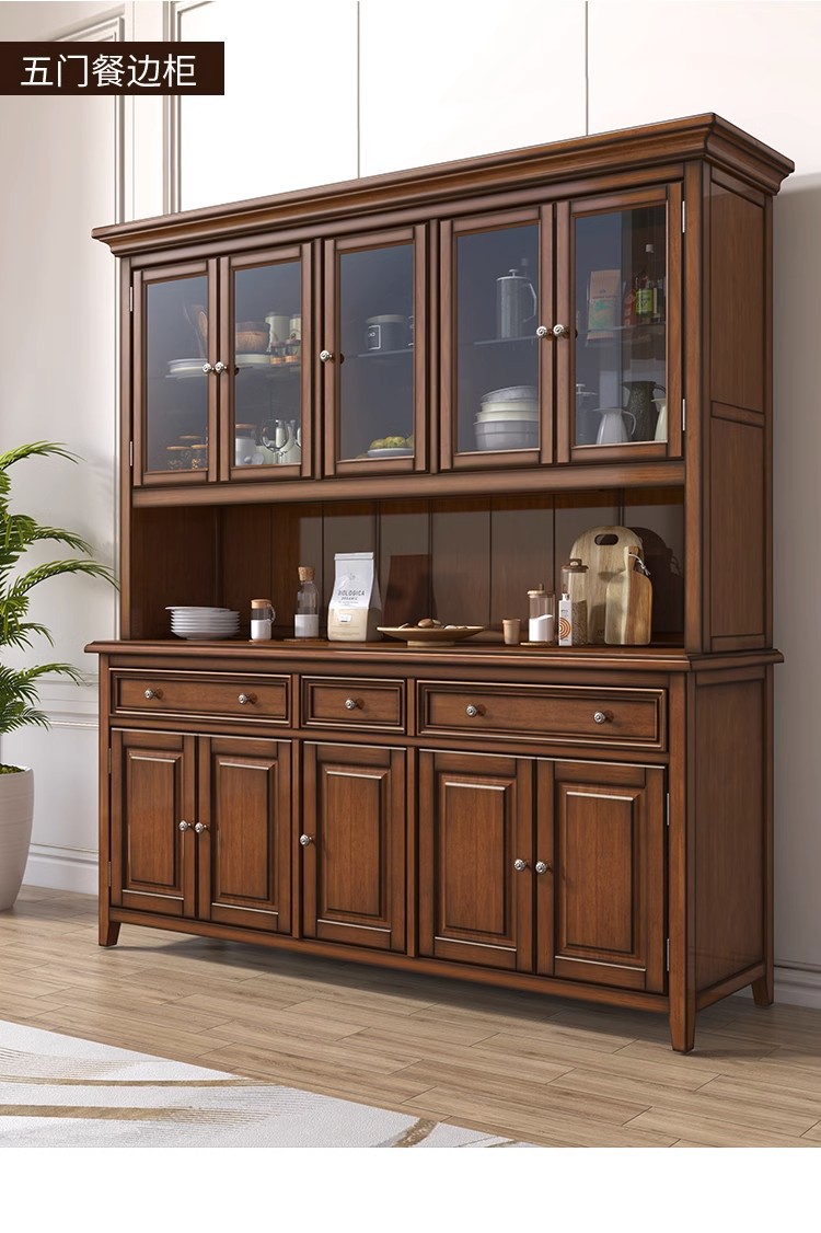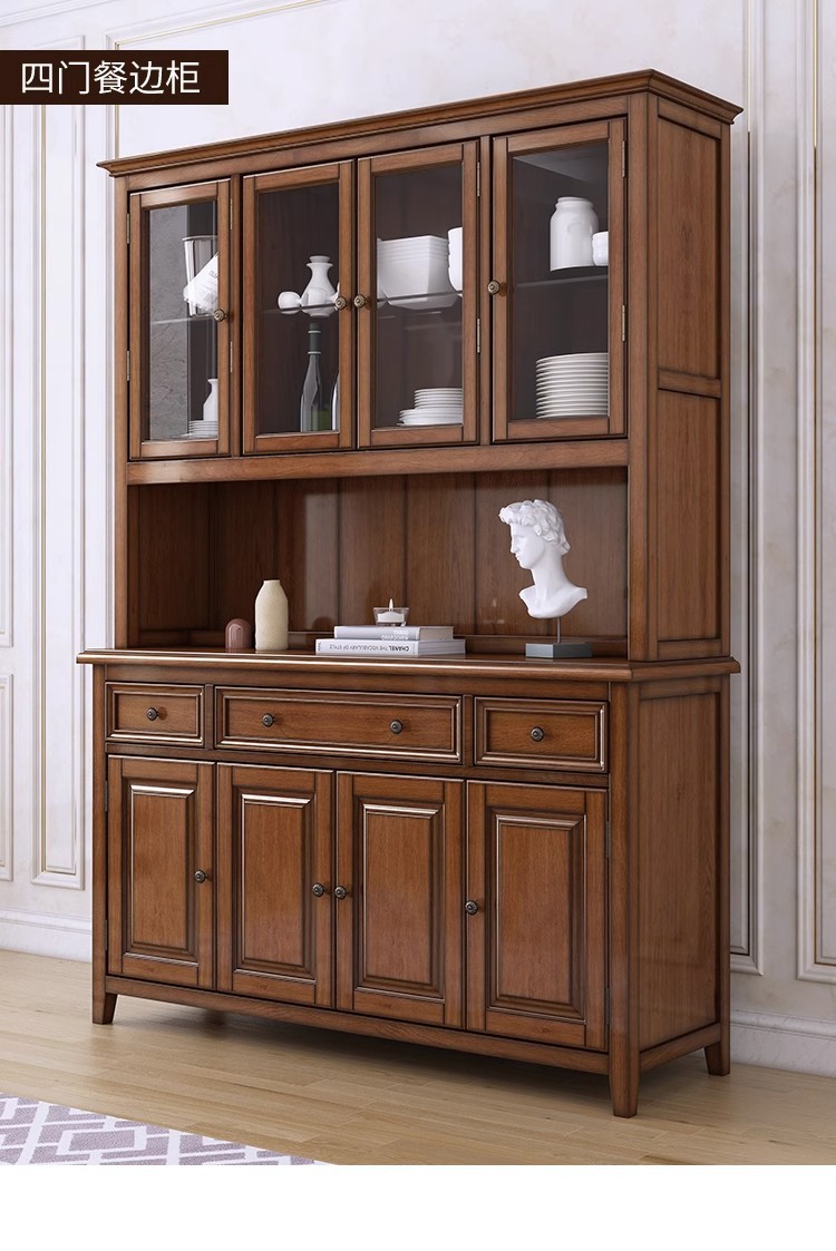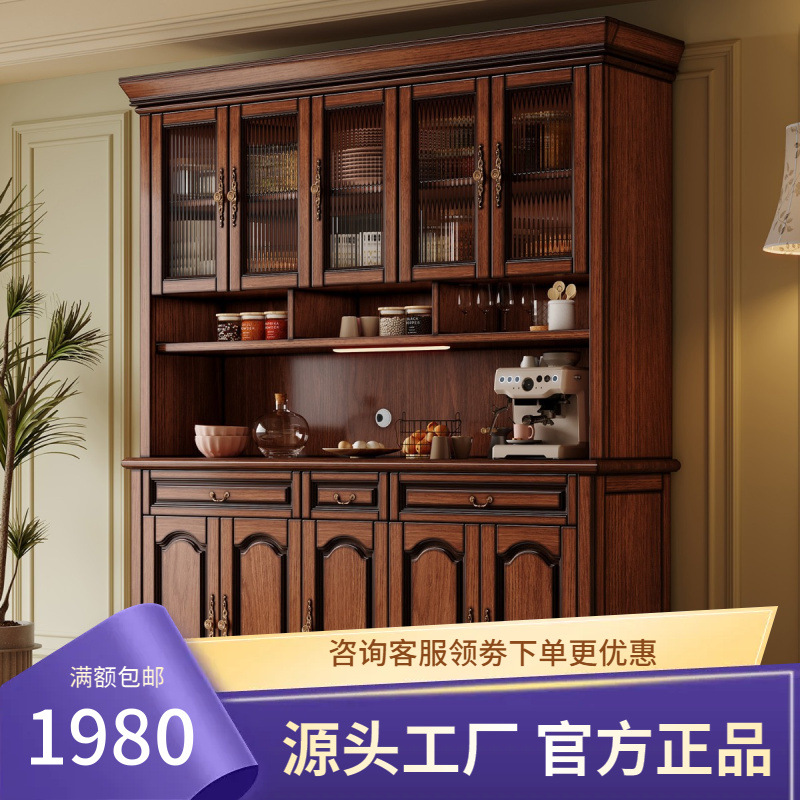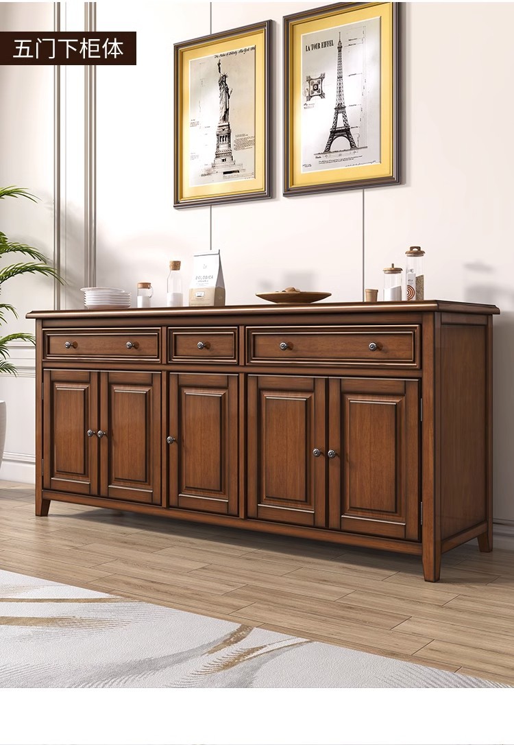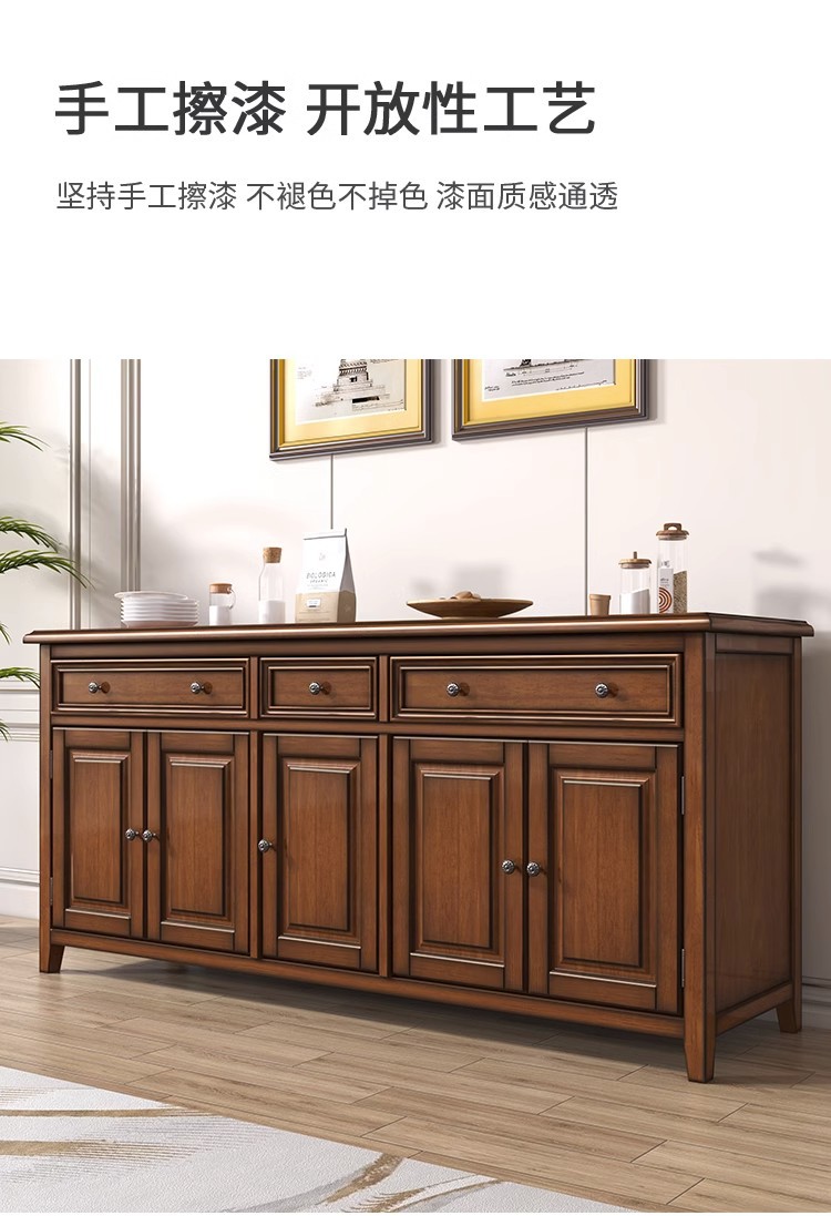 美式复古实木餐边柜靠墙一体厨房橱柜桃花心木置物酒柜储物收纳柜