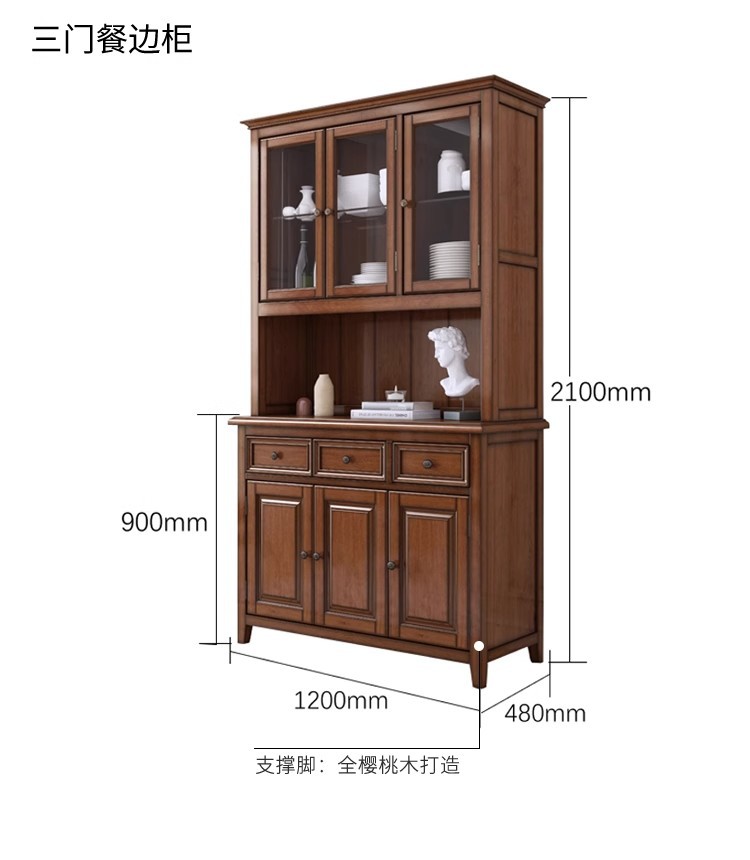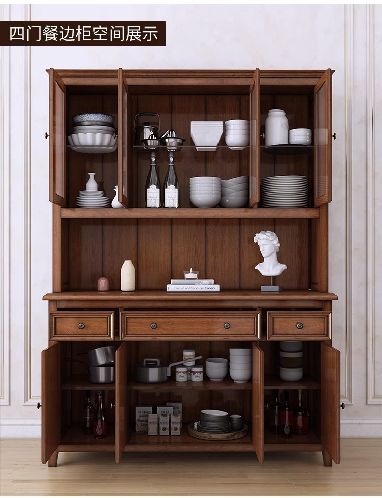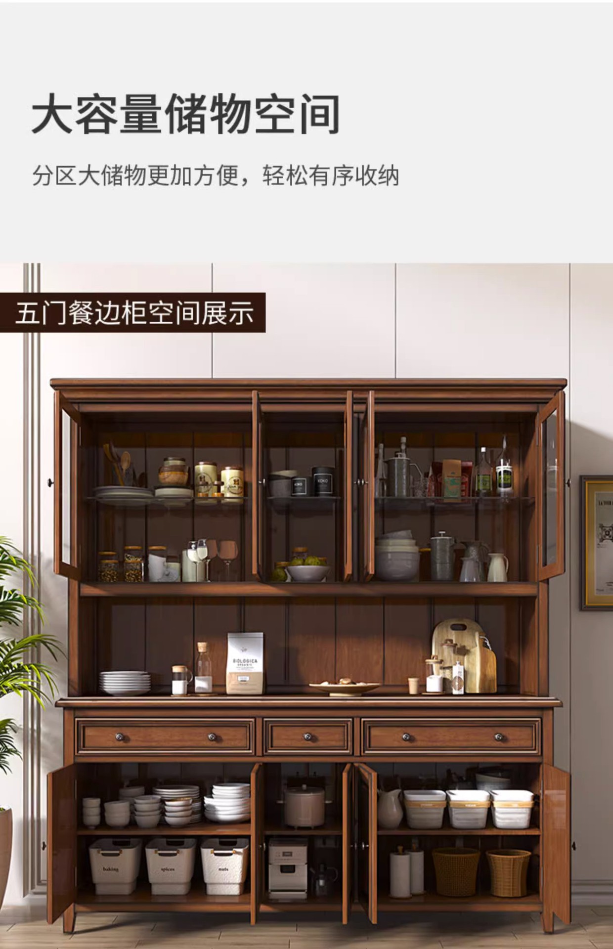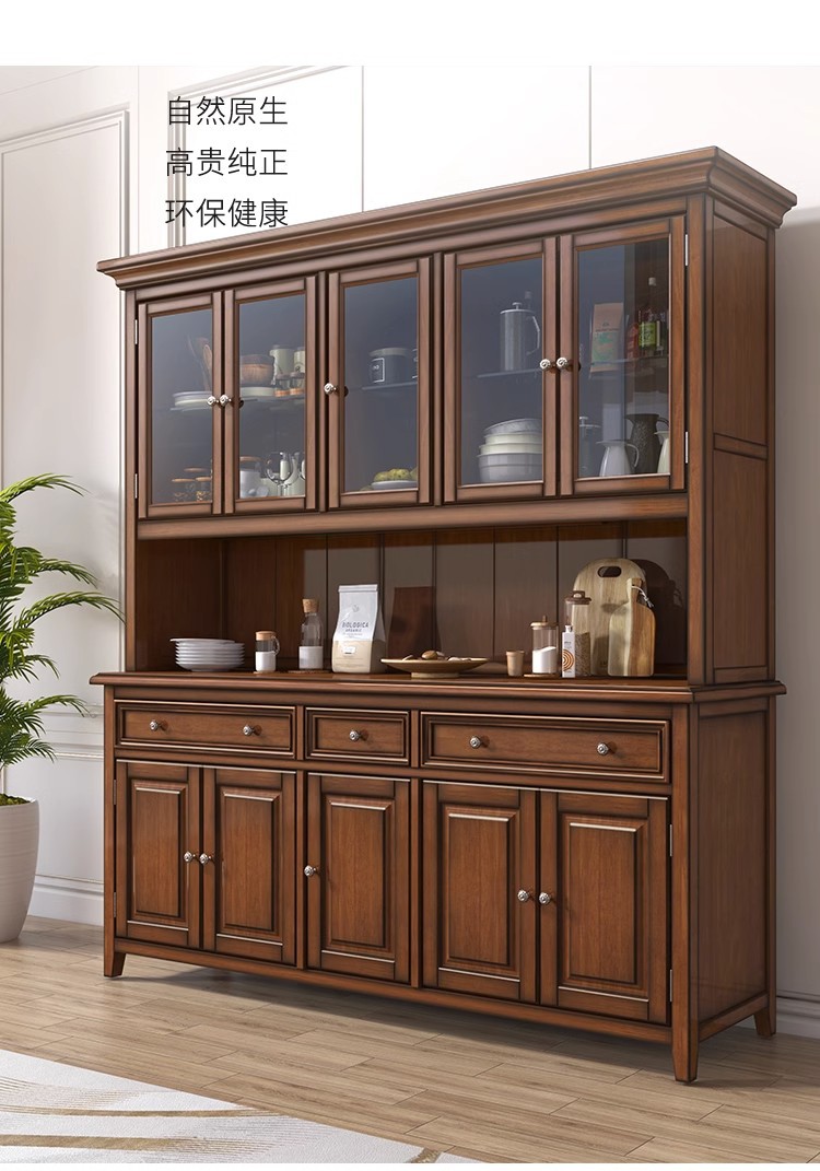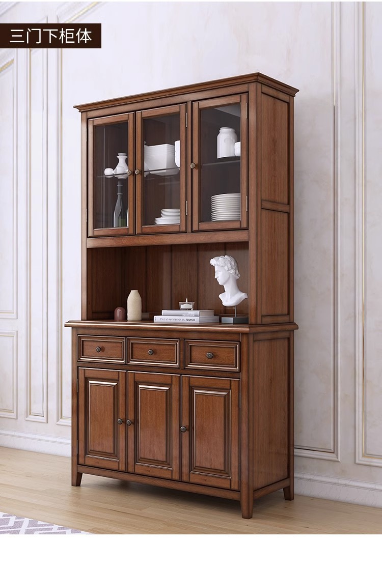 美式复古实木餐边柜靠墙一体厨房橱柜桃花心木置物酒柜储物收纳柜