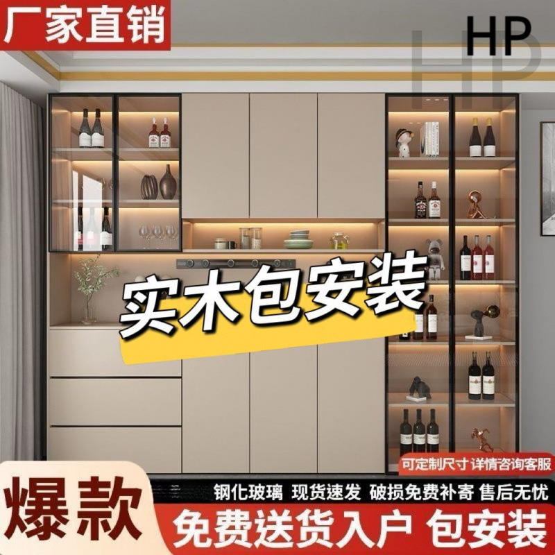 实木餐边柜靠墙一体高柜家用茶水柜轻奢酒柜客厅收纳储物柜子