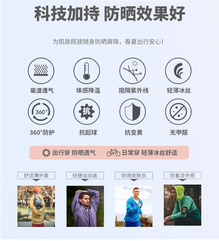 春夏の新型アウトドアウェアの女性アイスの高弾服の男性の皮膚の服の女性は紫外線に抵抗してlogoを印刷することができます。