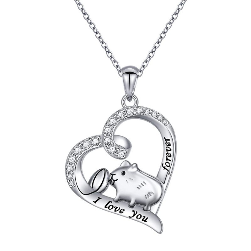 铭菲国境を越えた新しいアイデアかわいいハムスターハート型彫刻i love you foreverペンダントネックレス女