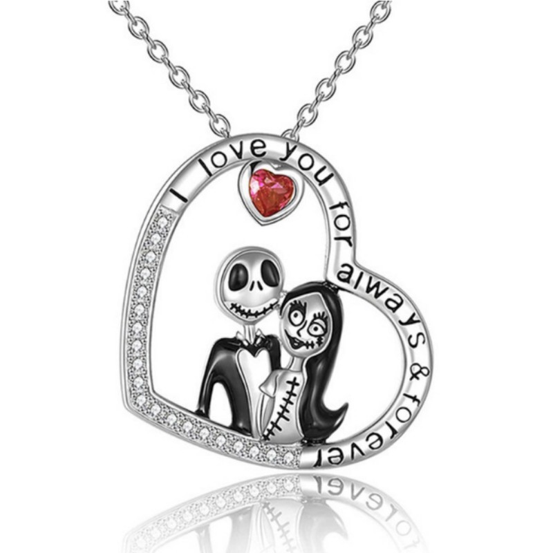 铭菲クロスボーダー人気アクセサリークリエイティブレトロスカルカップルネックレスハート型赤水晶桃心ペンダント女性アクセサリー