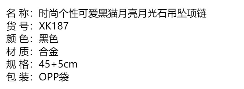 铭菲欧米の国境を越えた新しいアクセサリーのアイデアファッション個性がかわいい黒猫月月光石ペンダントネックレス女