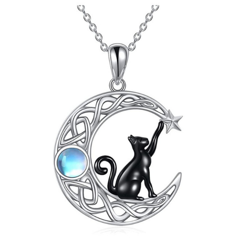 国境を越えた新しいアクセサリーのアイデアファッションシンプルな月の光石月の星黒猫ペンダントネックレス女性の祝日プレゼント