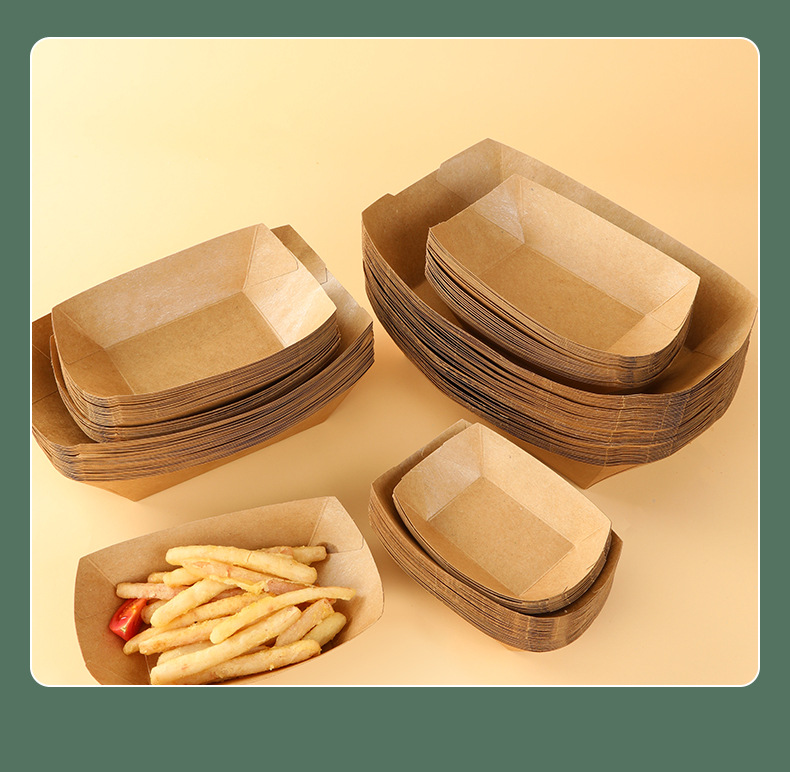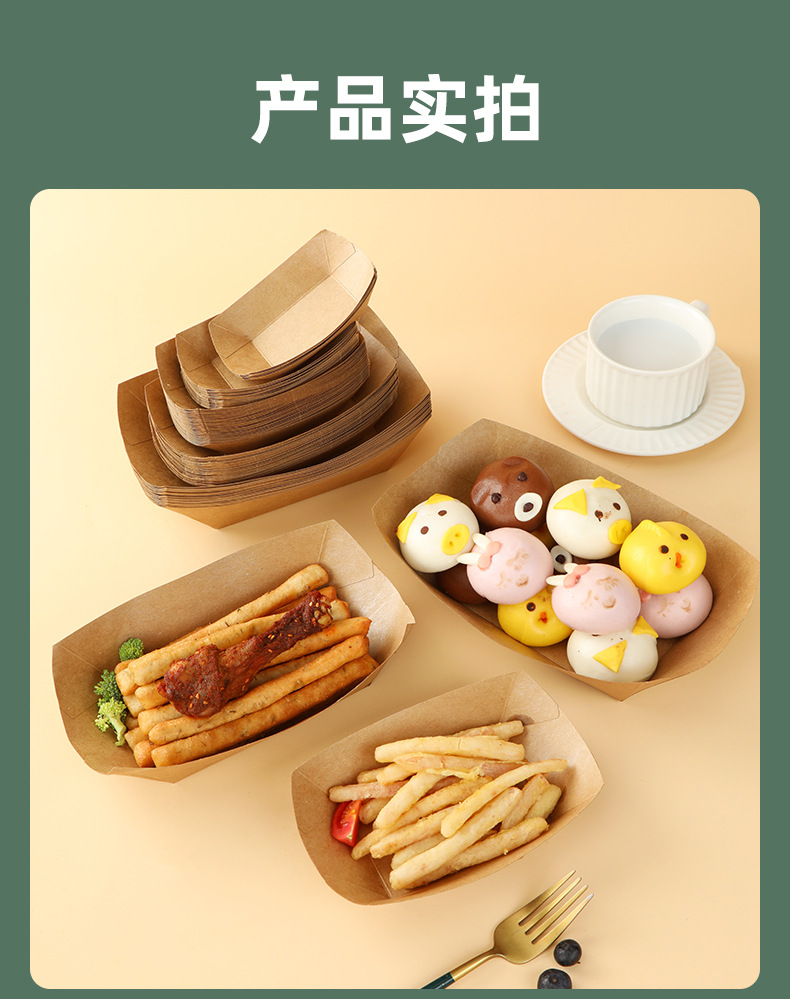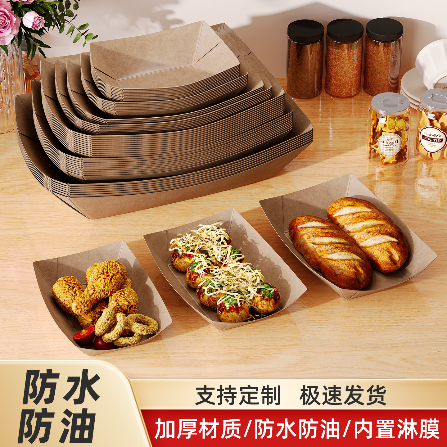 使い捨てクラフト紙船箱オープントレイフライドチキン軽食ポテトフライ串焼き船型梱包箱ランチボックス