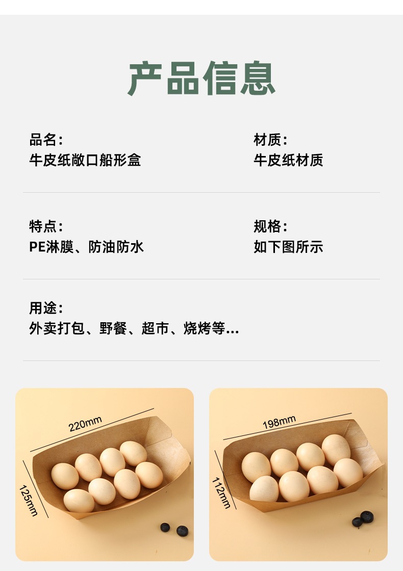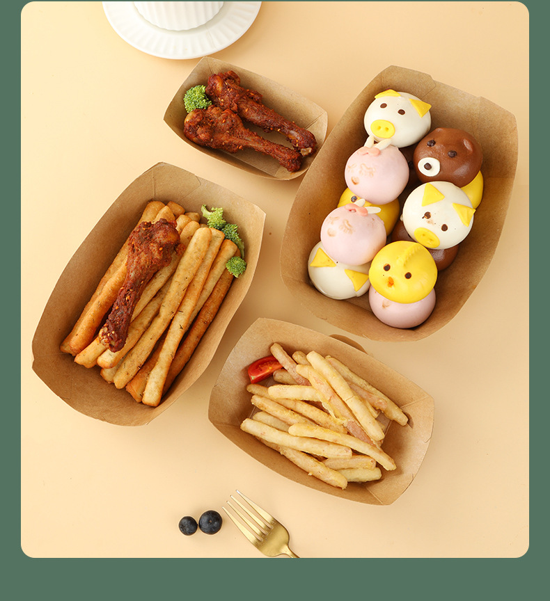 使い捨て牛革紙食器 船型ボックス ランチボックス オープンタイプ スナック フライドポテト 鶏手羽先 スナック ロゴ印刷可能