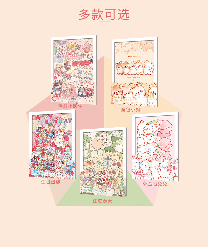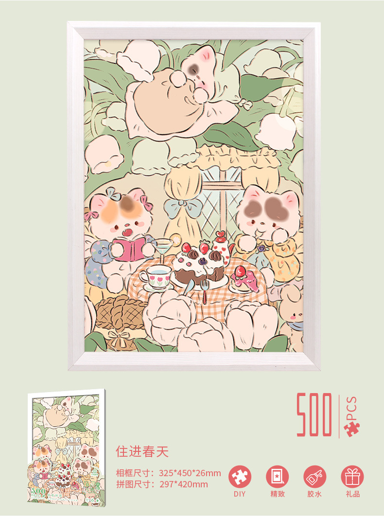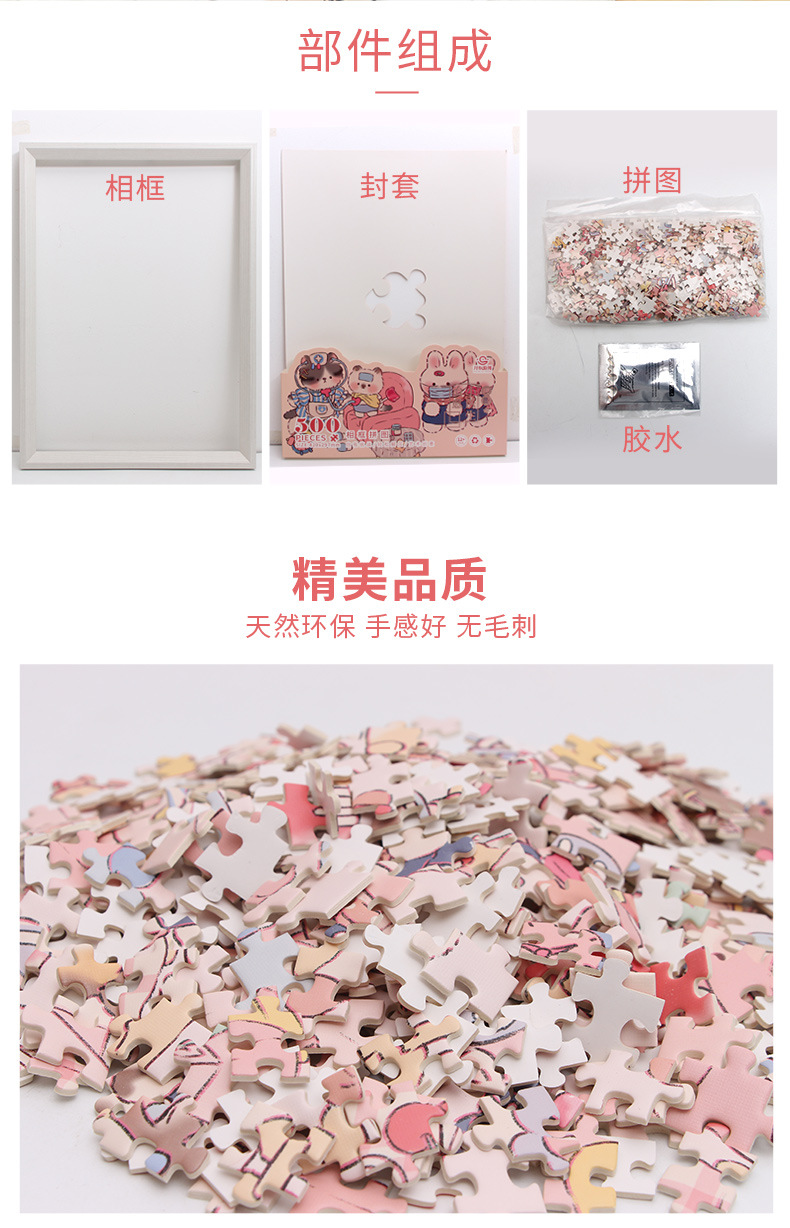 新しい500枚のパズル招き猫ウサギ漫画癒しイラストフォトフレーム付きパズル誕生日プレゼント