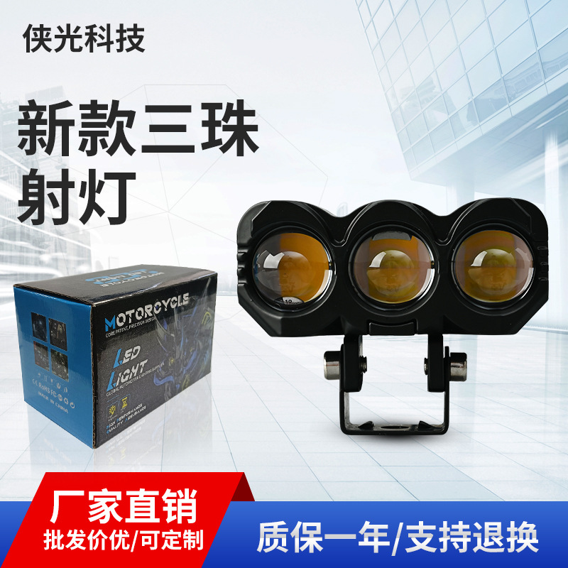 国境を越えた新しい 3 ビーズオートバイライト 2 色の遠近電気自動車ライト改造オートバイオートバイスポットライト