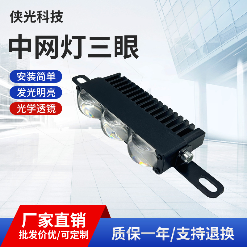 摩托车射灯强光铺路中网灯三眼大灯超亮电动车射灯led