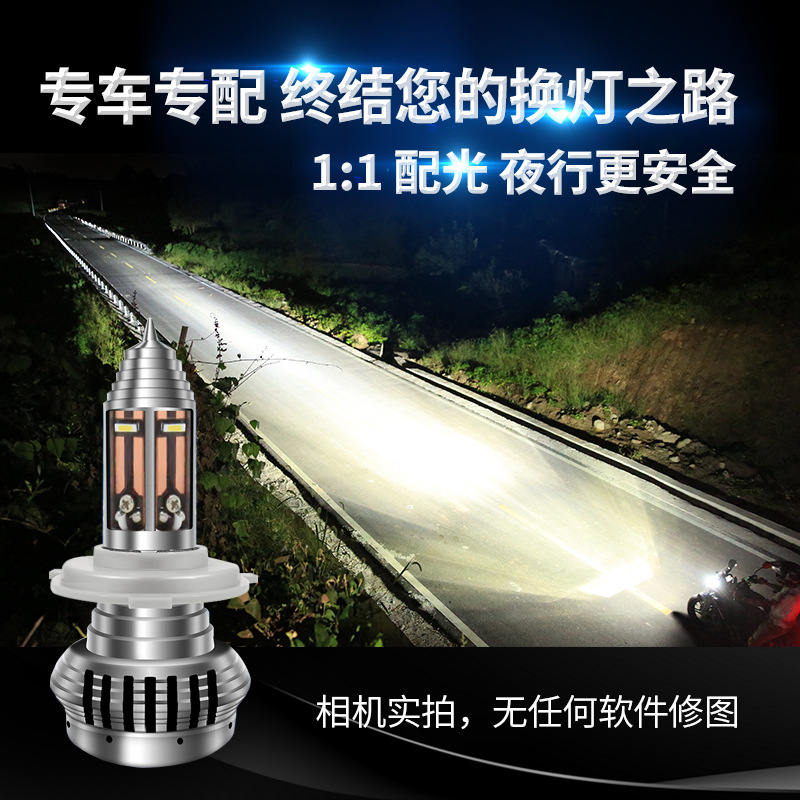 电动车三轮车超亮LED大灯泡摩托车大灯双爪高低脚远近光超亮射灯
