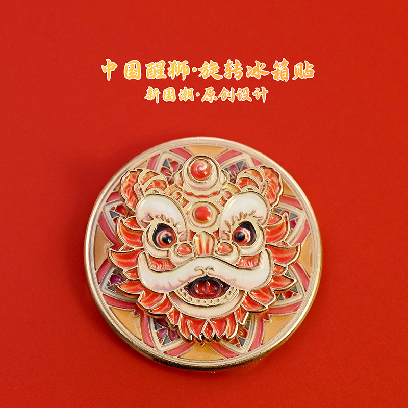 中国風新国潮故宮舞獅子文創回転可能覚醒ライオン冷蔵庫に磁気吸引力を貼ってお祝いのアイデアプレゼントを貼ることができます。