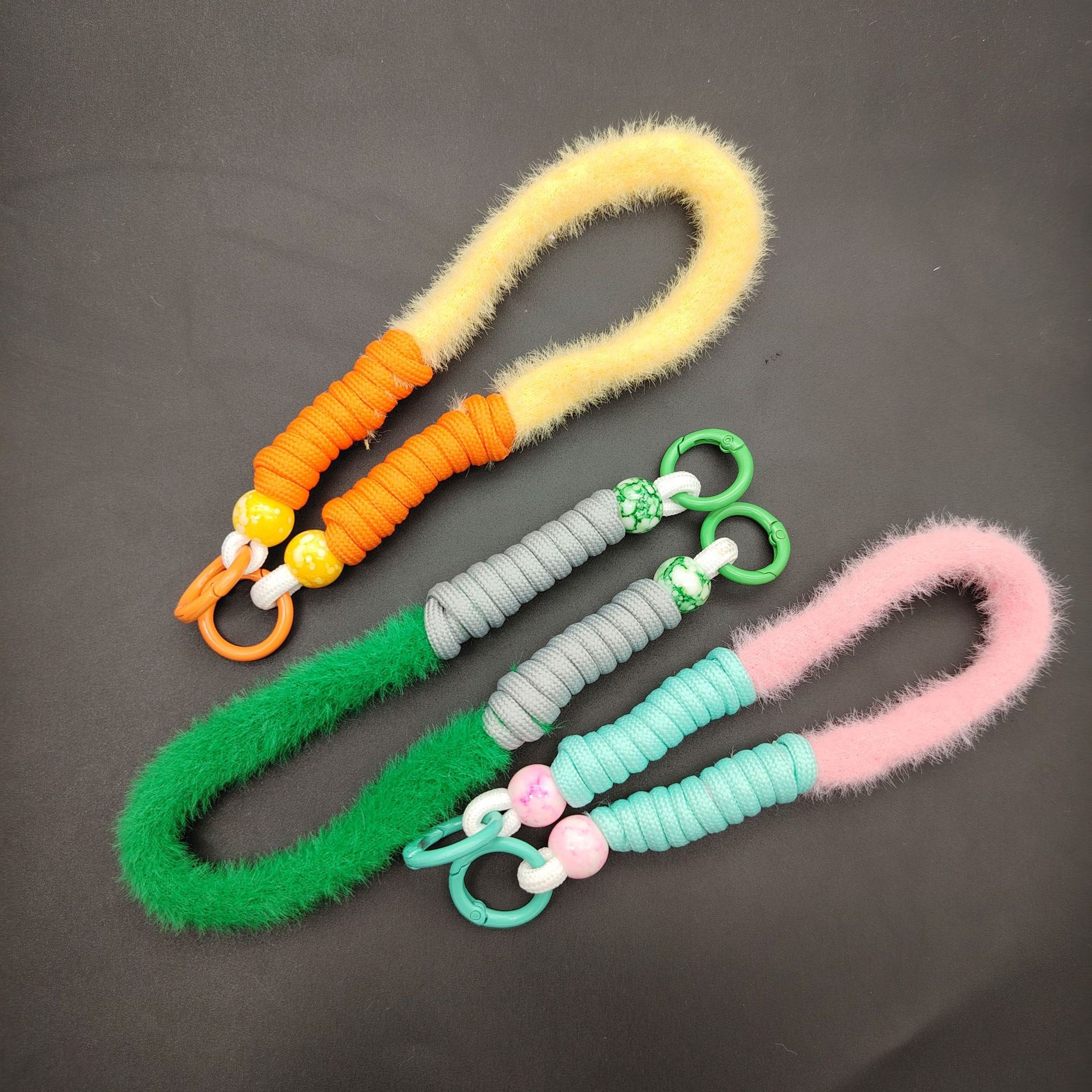 小清新カラーのぬいぐるみの短い携帯電話のキーホルダーの女性ファッションの毛糸の人形のぬいぐるみのアクセサリーの部品
