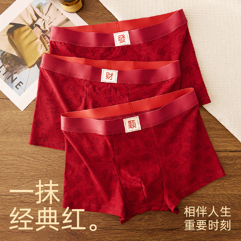 本命年大红男士内裤抑菌内档送礼结婚喜庆跨年红色纯棉男士四角裤