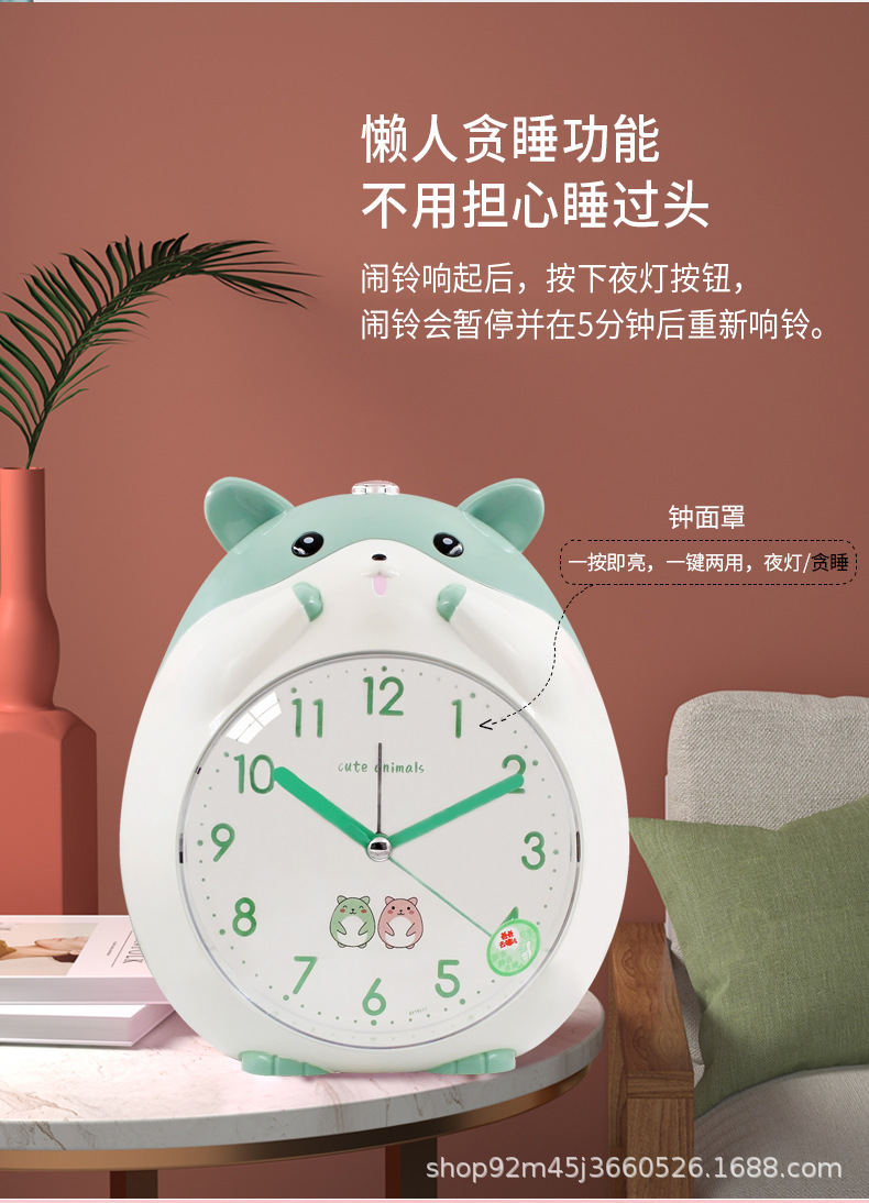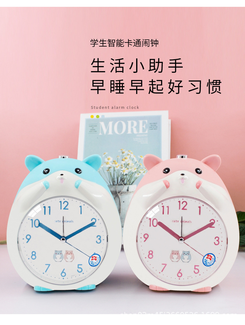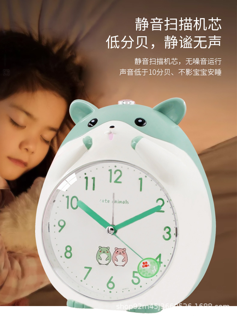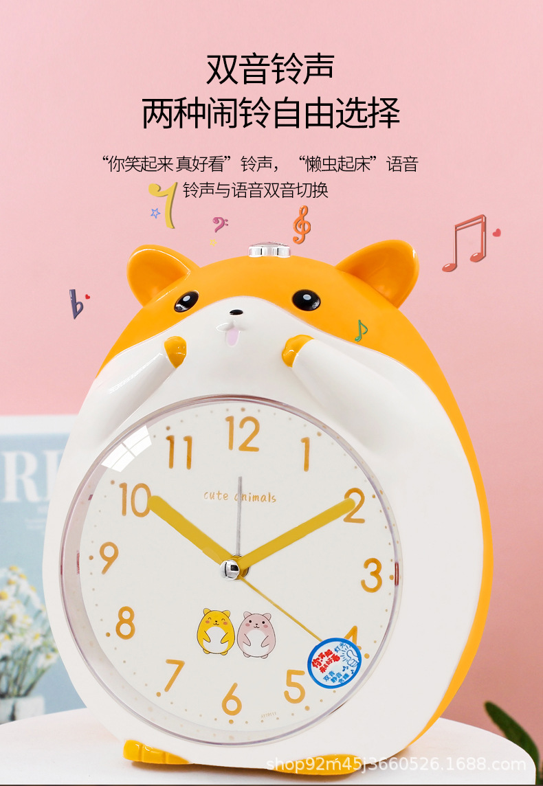 学生用静音ベッドサイドナイトライト怠け者ネズミ漫画音声目覚まし時計子供用目覚まし時計クリエイティブ漫画目覚まし時計