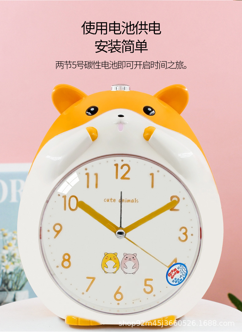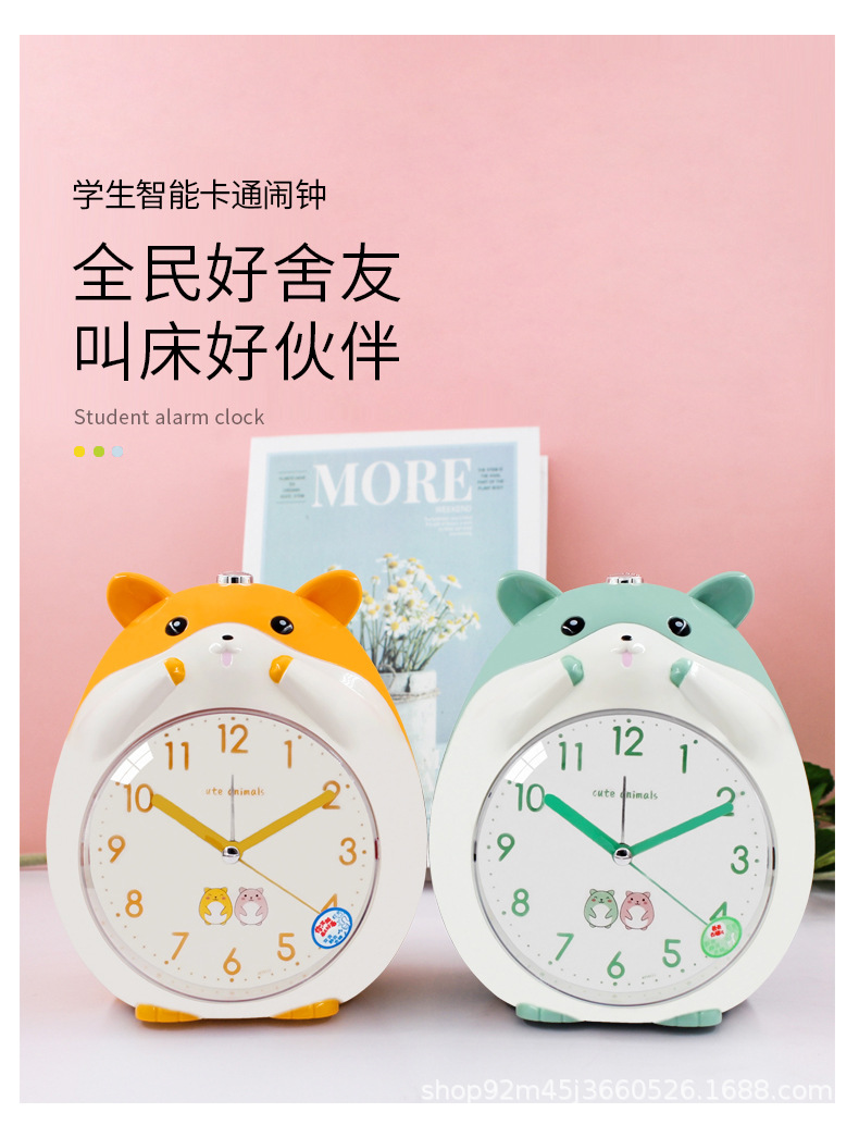 学生の小さい目覚まし時計の怠け者の起きた音楽の多機能の子供の動物の時計の寝室の静音のファッションのかわいい置き時計