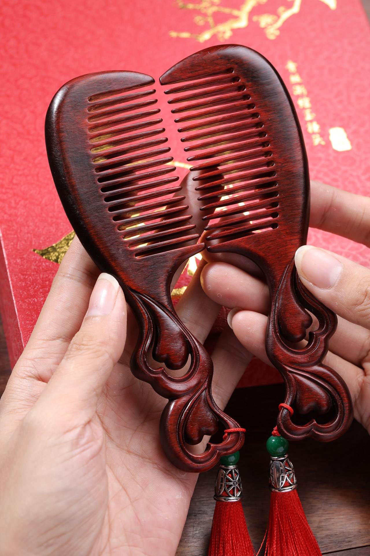 心相印心連心紅木紫檀木櫛子美容櫛礼箱セットプレゼント結婚祝いプレゼント卸売り