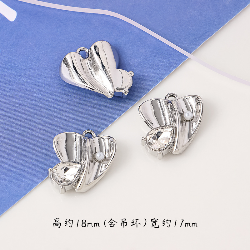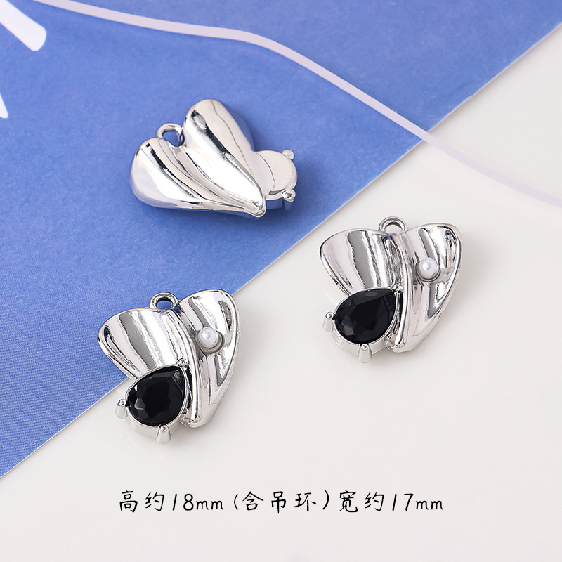清冷感合金蝶結び銀色ペンダントビーズdiy手作りアクセサリーイヤリング材料部品