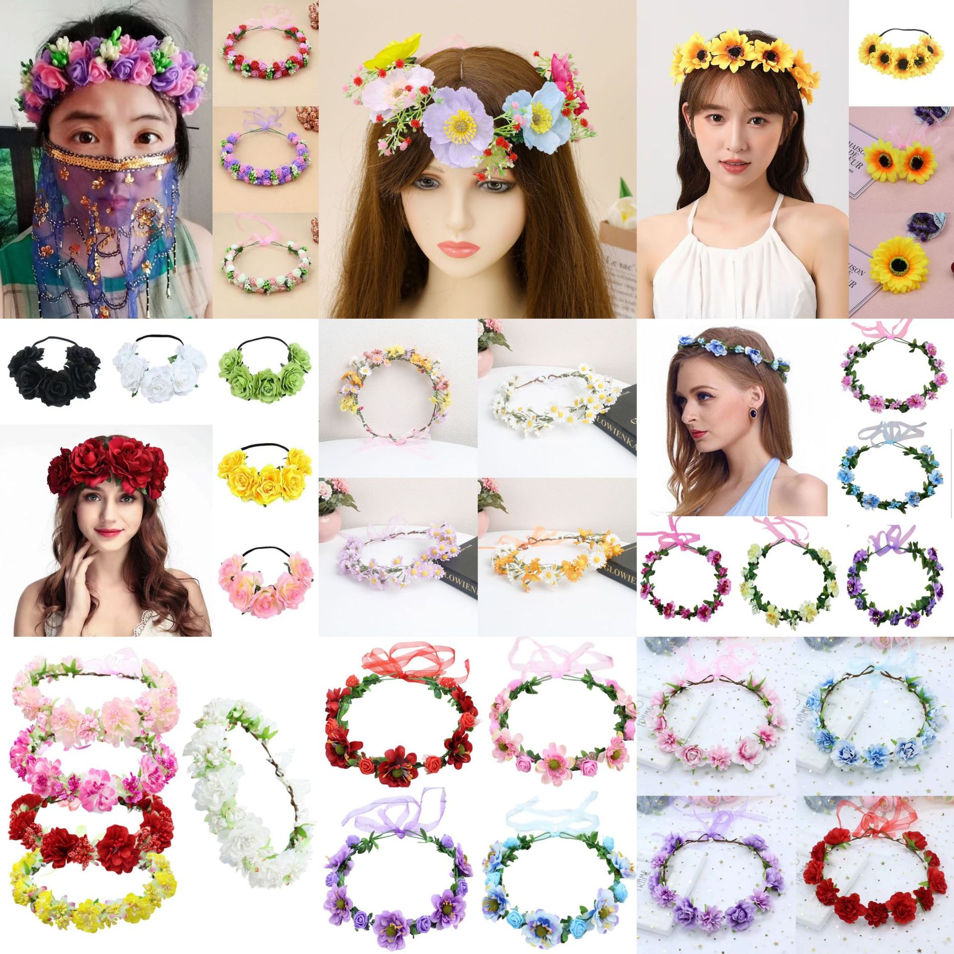 人気沸騰中!森ガール風クロスボーダー人気商品、クラウンフラワーリングヘアバンド、ブライダルヘアアクセサリー、観光名所、写真撮影、屋台での販売に最適なヘアバンド卸売