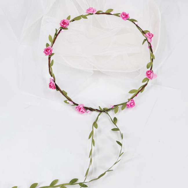 森女新款玫瑰花环太阳花仿真花朵绿叶发饰景区节日聚会发箍批发