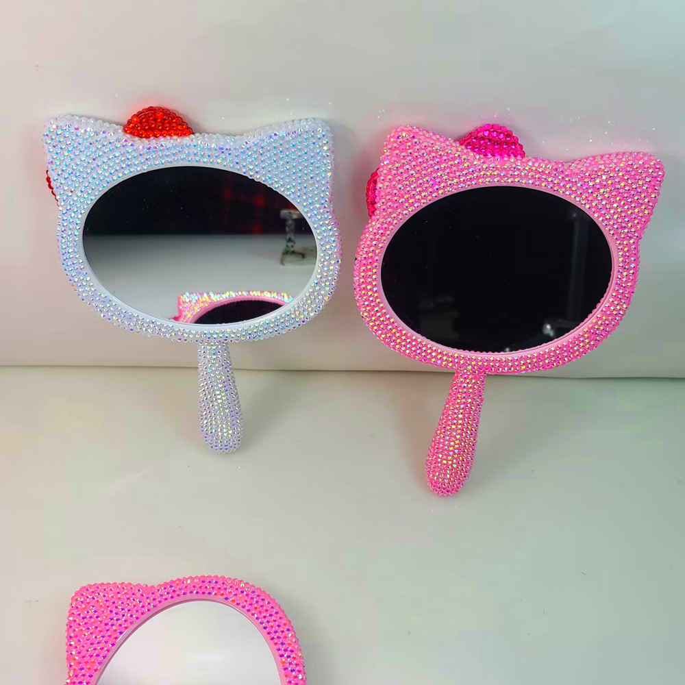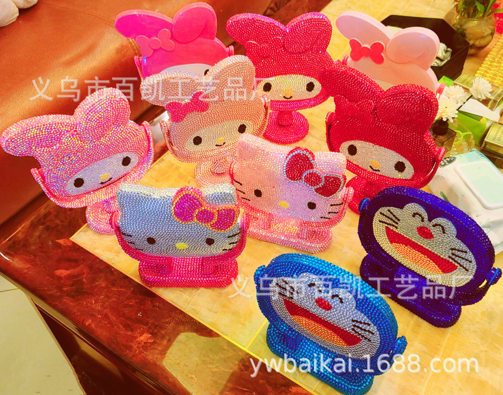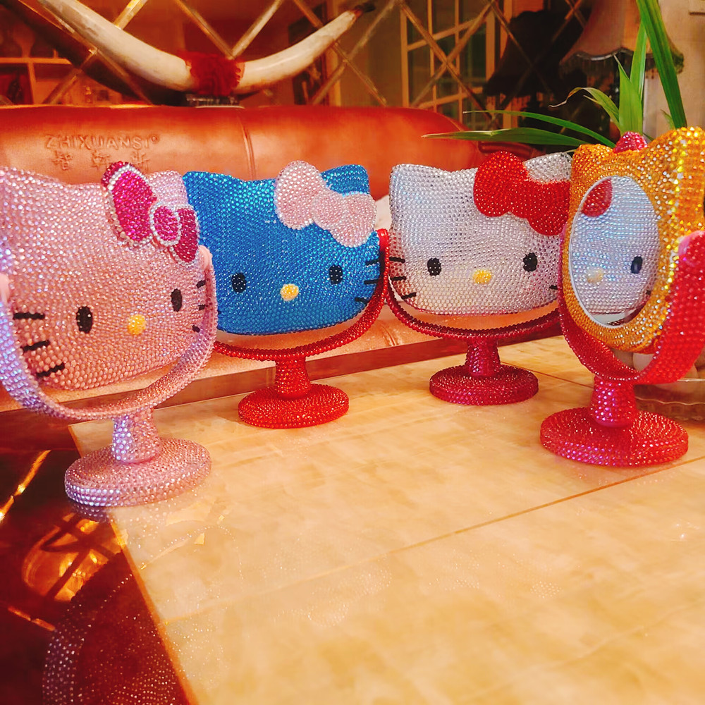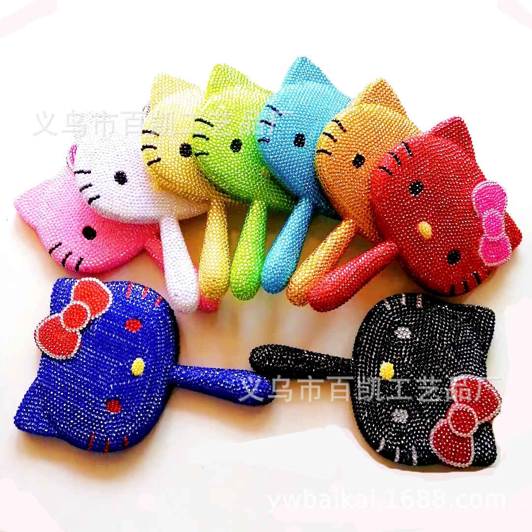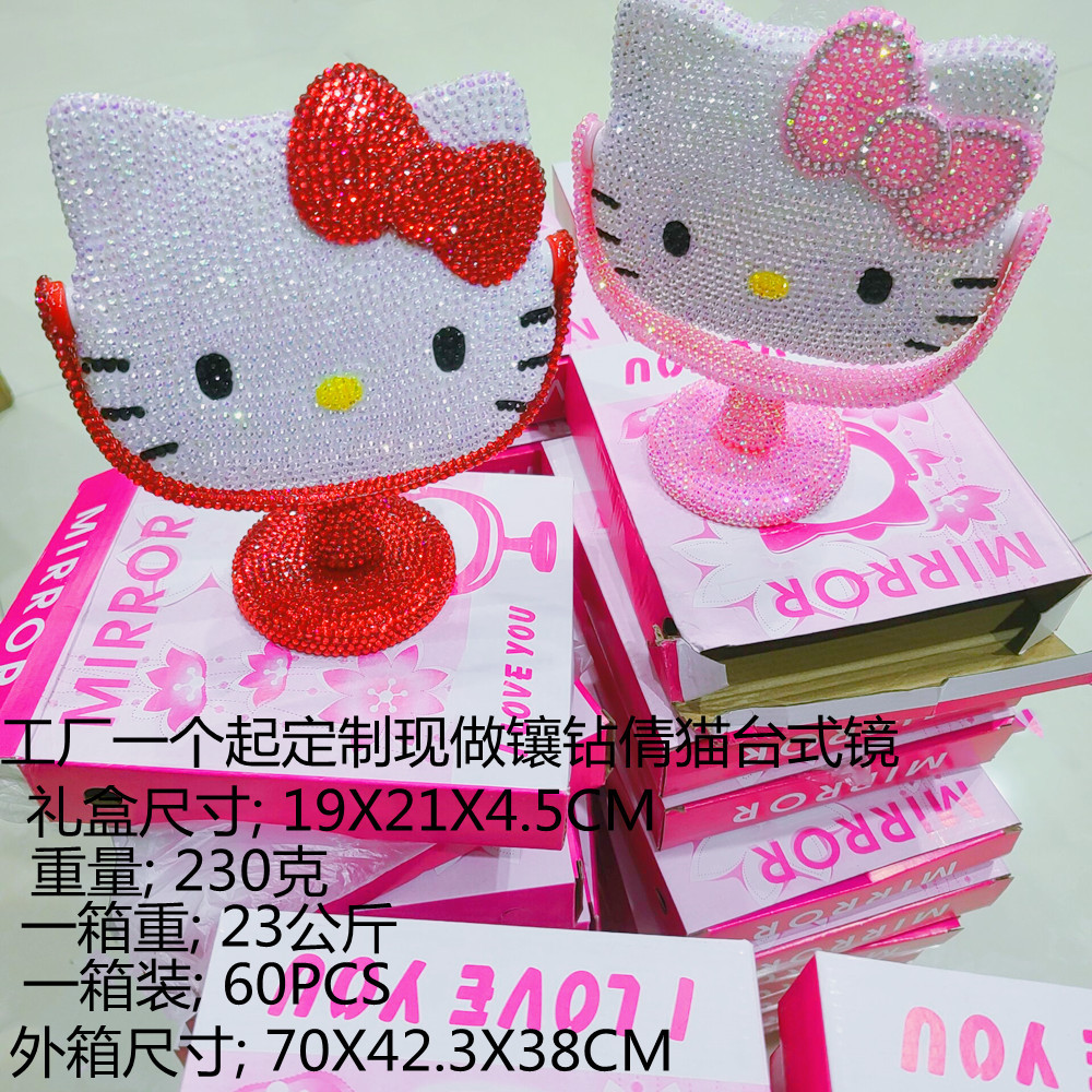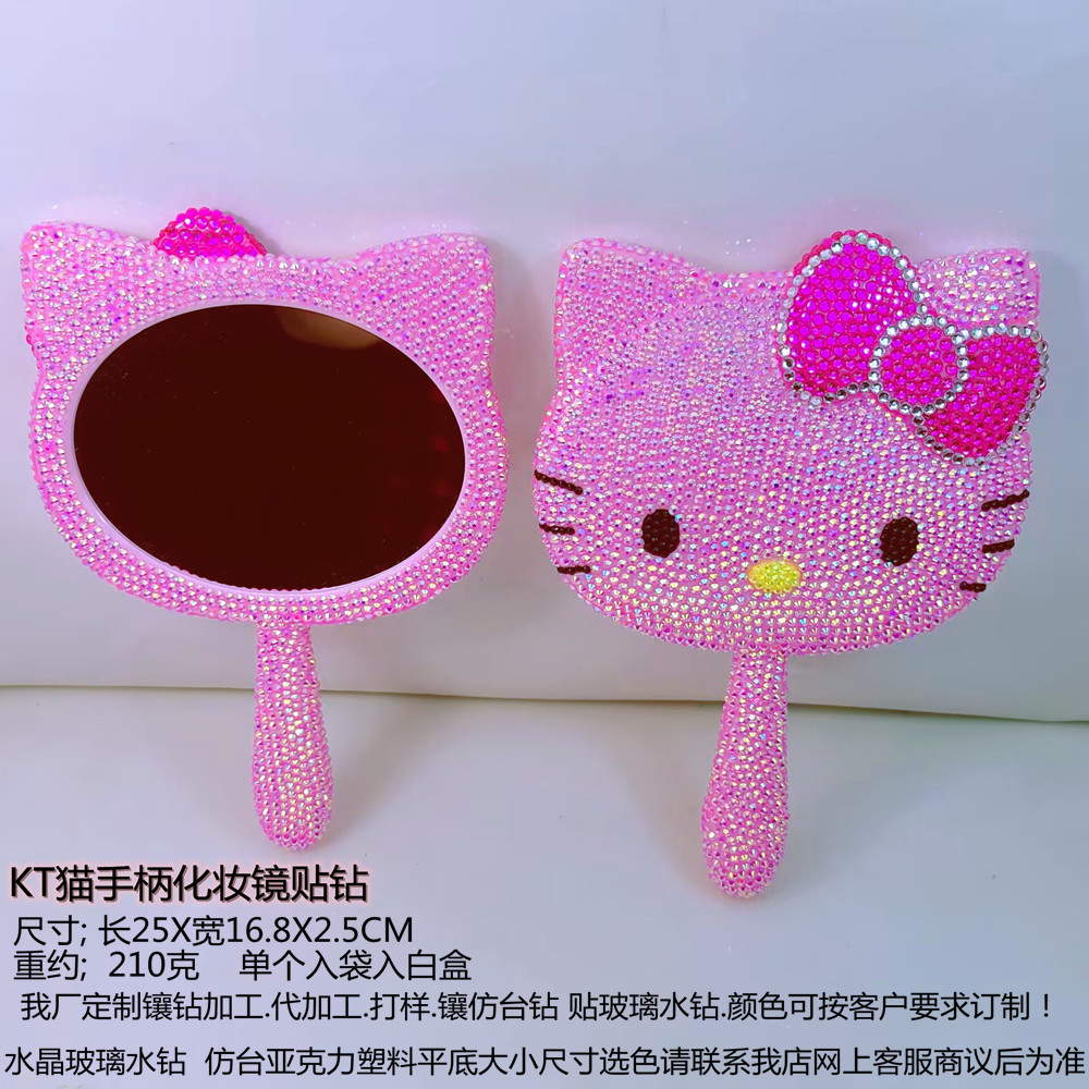 点击修改文字定制台式KT猫化妆镜贴钻本厂网店的大部份镶钻产品客户都可指定自已喜欢的颜色来配现做一个起订可代客户定制贴(纯手工粘贴玻璃水晶钻)仿台塑料钻不干胶整张贴 注—厘米左右偶尔有相差纯属正常工!尺寸; 底座直径10CM /猫头尺寸; 17X14CM /镜面14X10CM /整体高度21.5CM 单个重; 31.5克/材质ABS塑料 /包装单个入彩盒