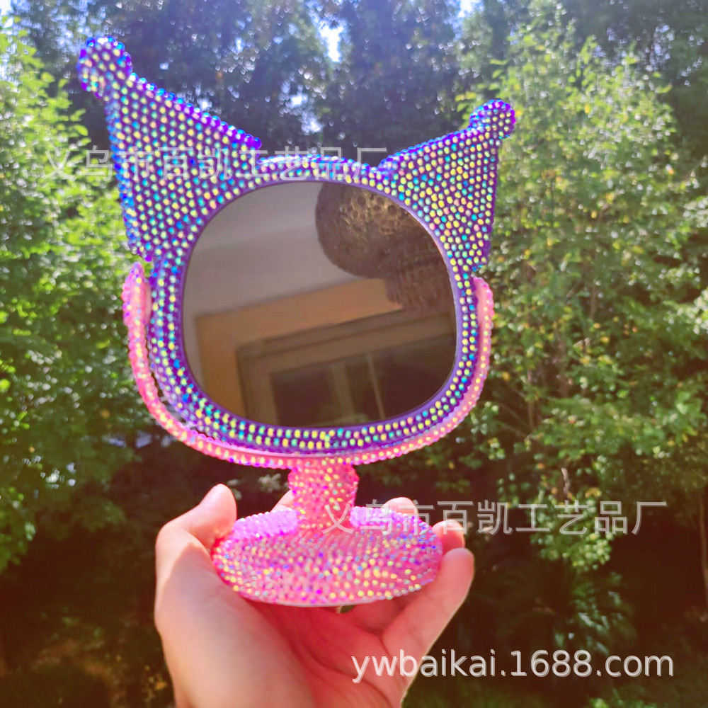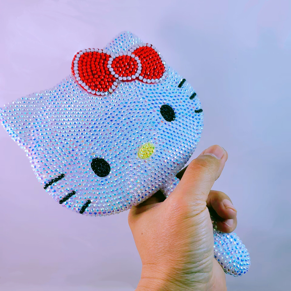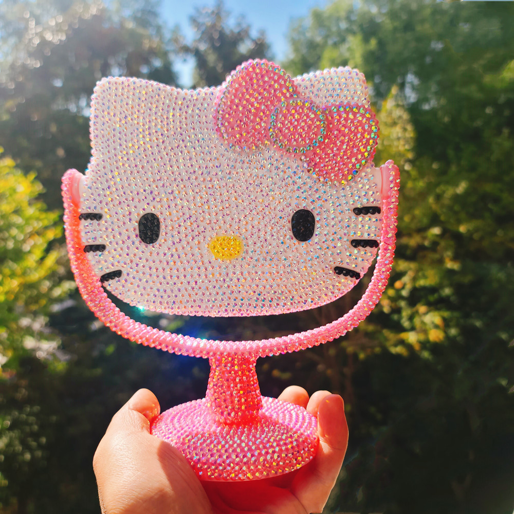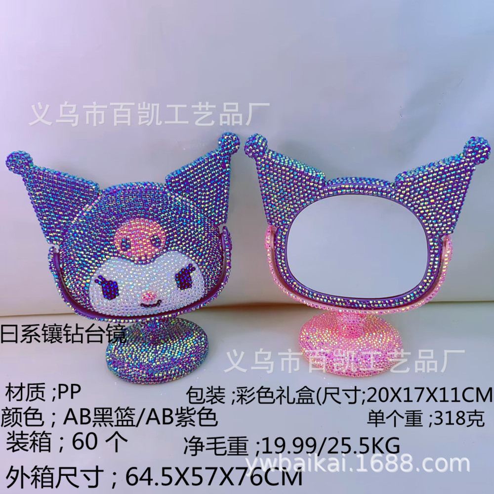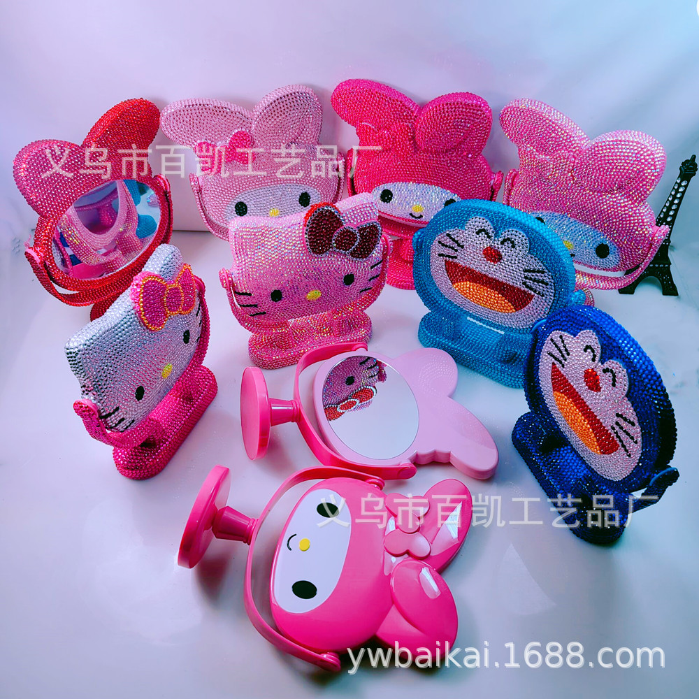 点击修改文字定制台式KT猫化妆镜贴钻本厂网店的大部份镶钻产品客户都可指定自已喜欢的颜色来配现做一个起订可代客户定制贴(纯手工粘贴玻璃水晶钻)仿台塑料钻不干胶整张贴 注—厘米左右偶尔有相差纯属正常工!尺寸; 底座直径10CM /猫头尺寸; 17X14CM /镜面14X10CM /整体高度21.5CM 单个重; 31.5克/材质ABS塑料 /包装单个入彩盒