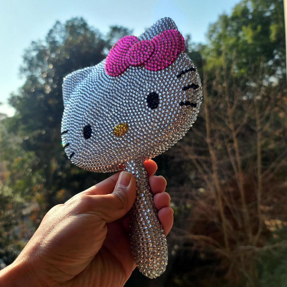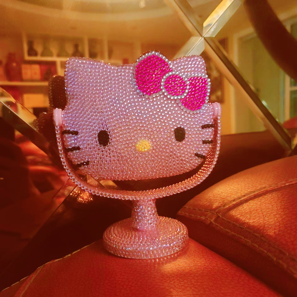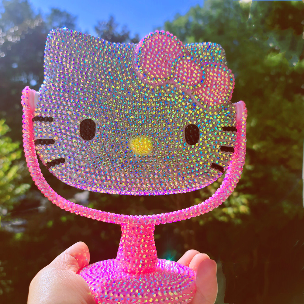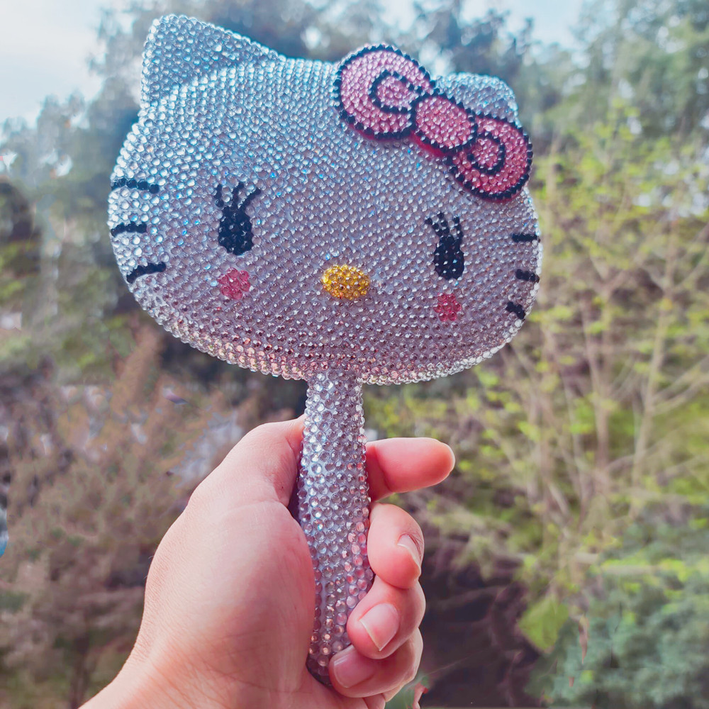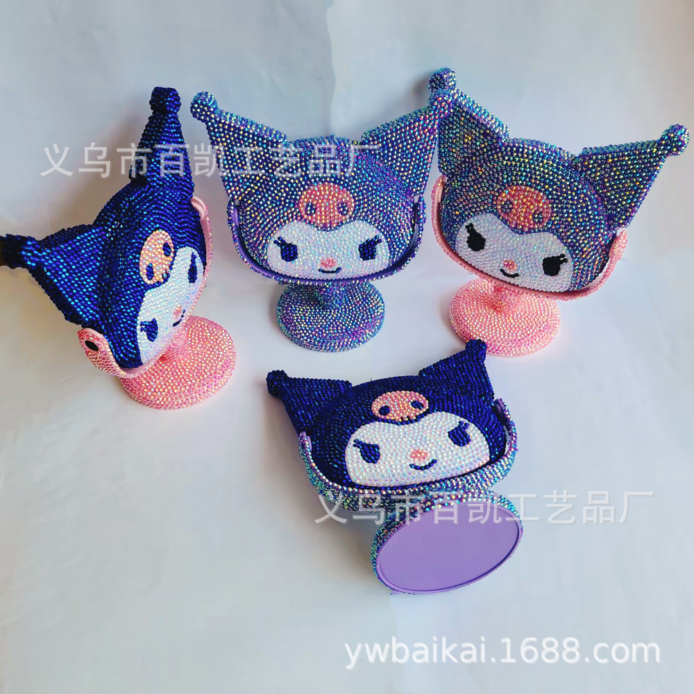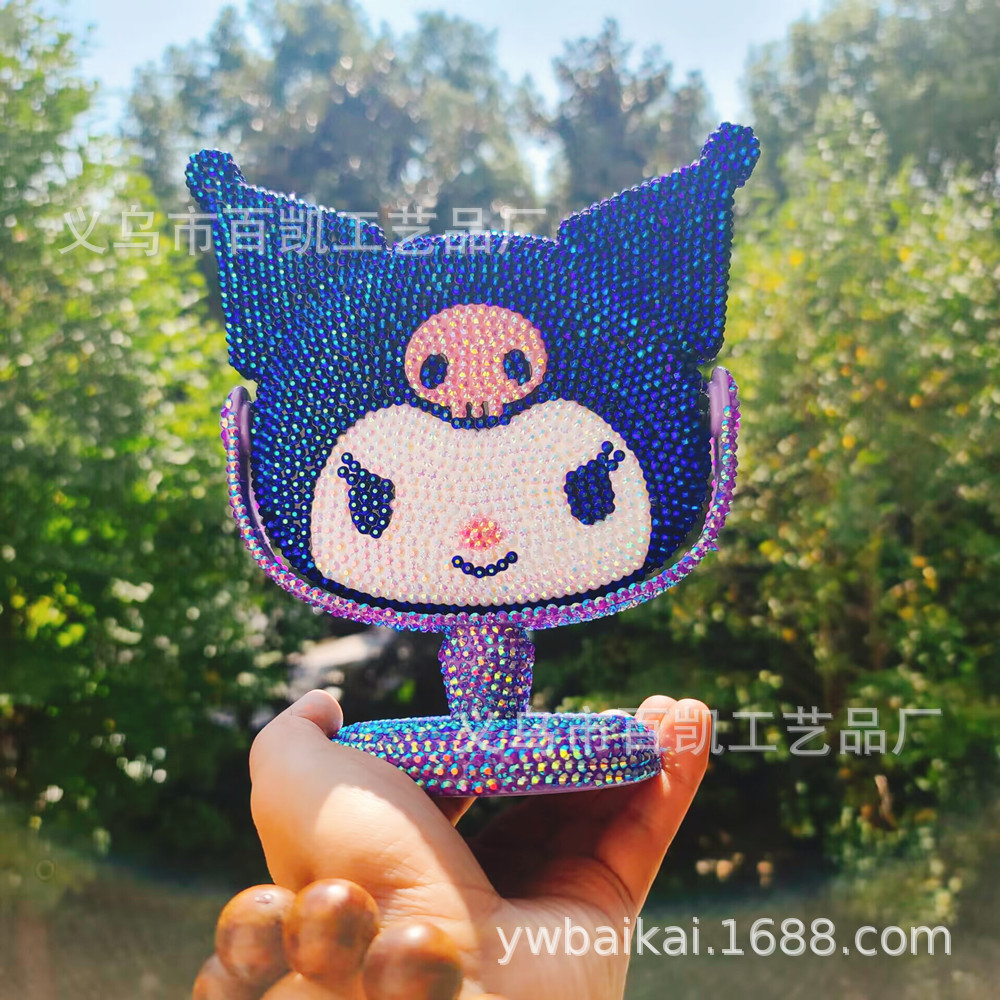 点击修改文字定制台式KT猫化妆镜贴钻本厂网店的大部份镶钻产品客户都可指定自已喜欢的颜色来配现做一个起订可代客户定制贴(纯手工粘贴玻璃水晶钻)仿台塑料钻不干胶整张贴 注—厘米左右偶尔有相差纯属正常工!尺寸; 底座直径10CM /猫头尺寸; 17X14CM /镜面14X10CM /整体高度21.5CM 单个重; 31.5克/材质ABS塑料 /包装单个入彩盒