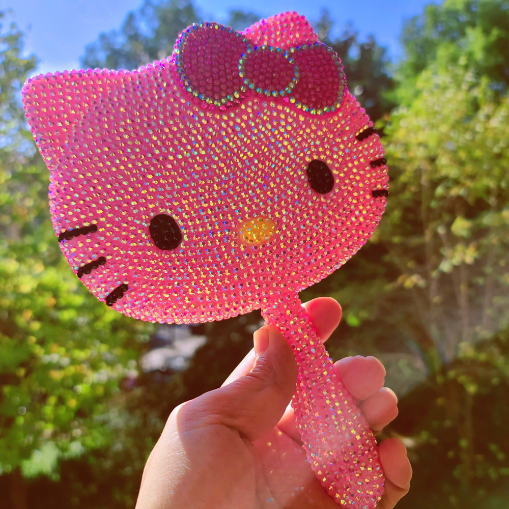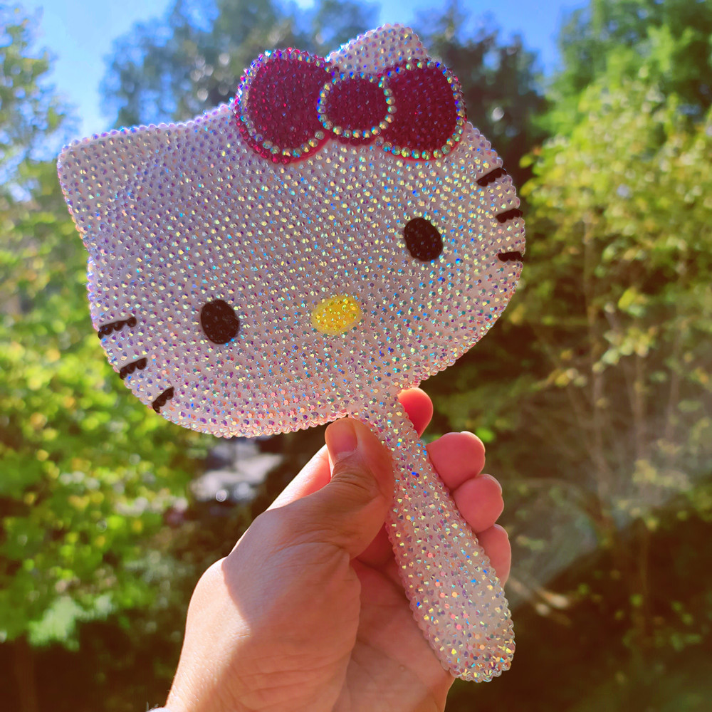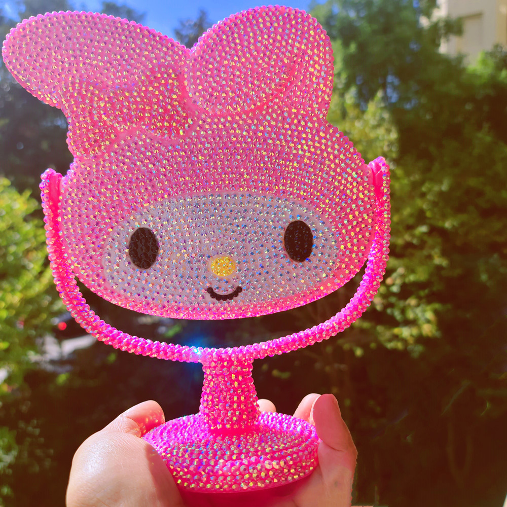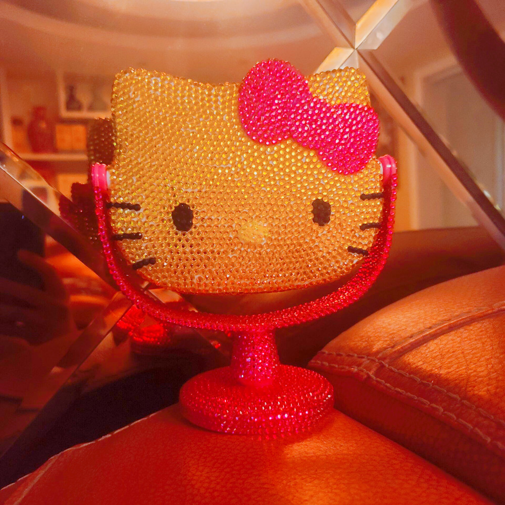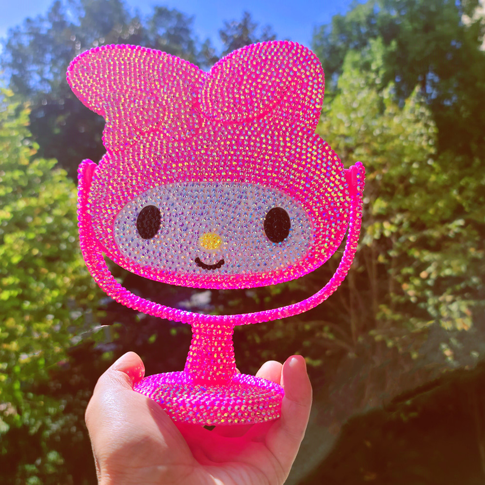 点击修改文字定制台式KT猫化妆镜贴钻本厂网店的大部份镶钻产品客户都可指定自已喜欢的颜色来配现做一个起订可代客户定制贴(纯手工粘贴玻璃水晶钻)仿台塑料钻不干胶整张贴 注—厘米左右偶尔有相差纯属正常工!尺寸; 底座直径10CM /猫头尺寸; 17X14CM /镜面14X10CM /整体高度21.5CM 单个重; 31.5克/材质ABS塑料 /包装单个入彩盒