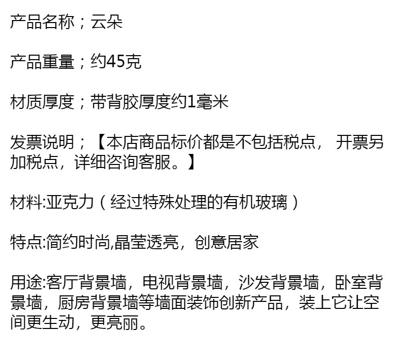 雲の鏡面のアクリルの壁は客間の背景の壁面を貼って子供の部屋の立体の壁を飾って幼稚園の鏡を貼ります。