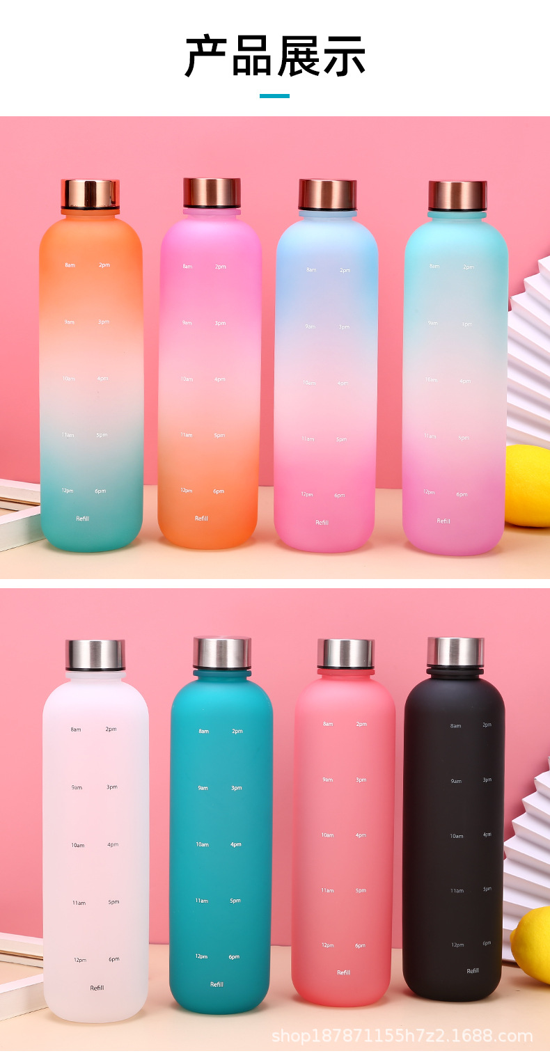 光沢グラデーション色プラスチックスポーツカップ1000ml大容量フロストカップ屋外宇宙カップ耐高温