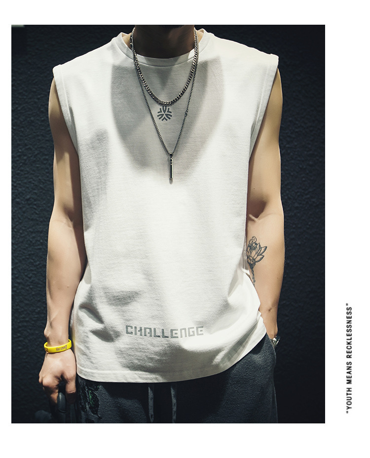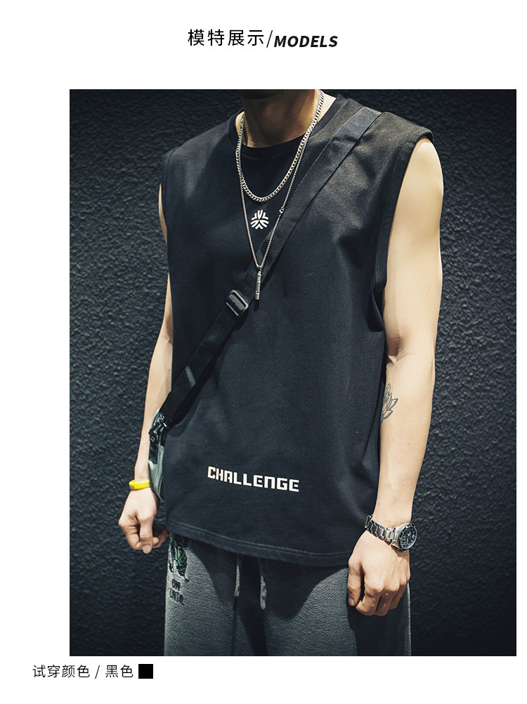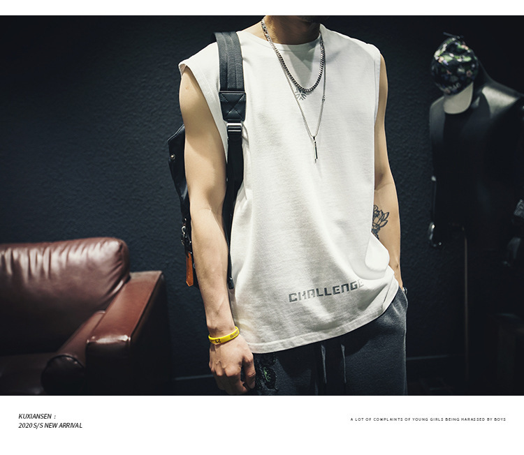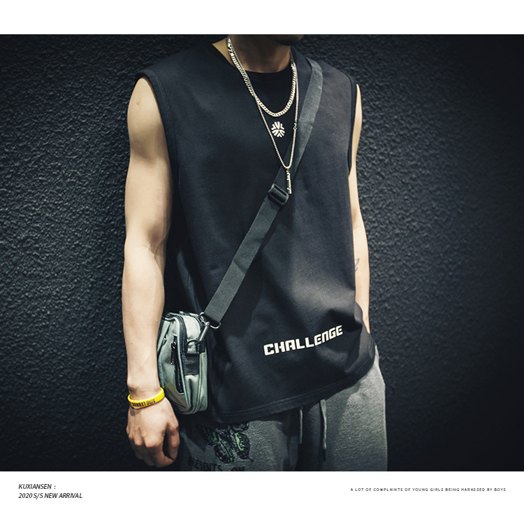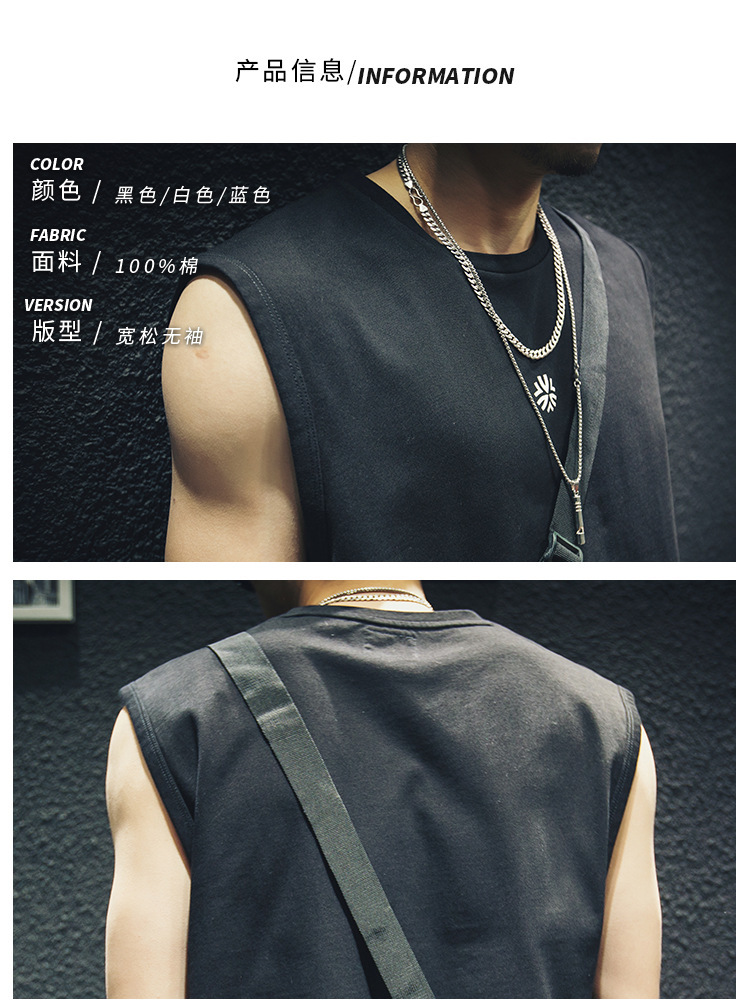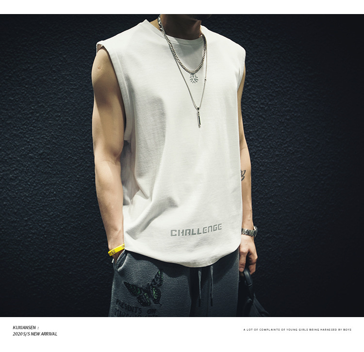 夏の純綿の袖なしtシャツベスト男性のゆったりしたファッションブランドinsカン肩半袖男子運動の大きいサイズの上着のファッション