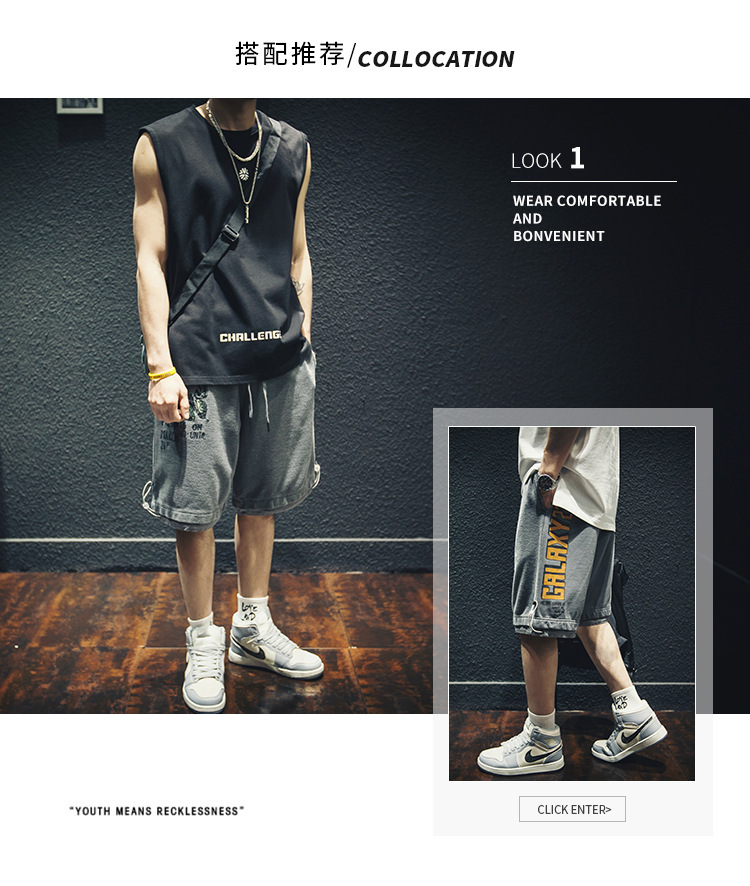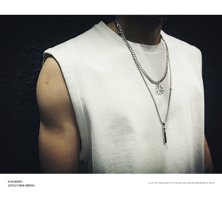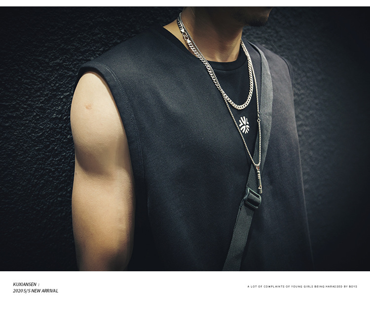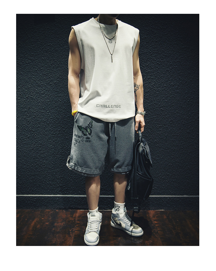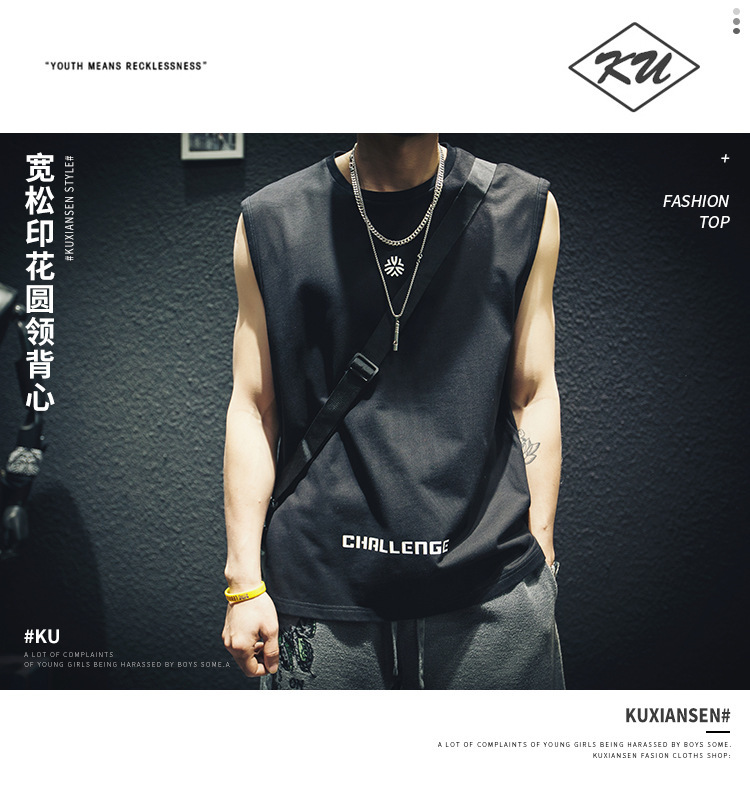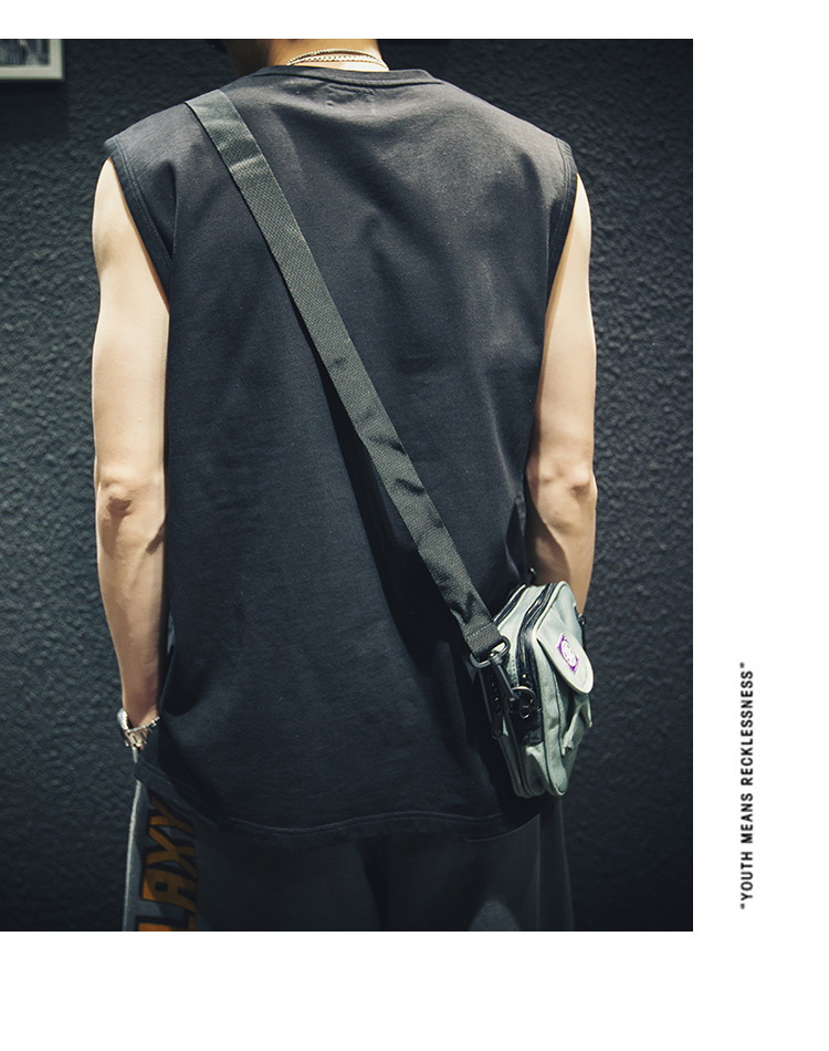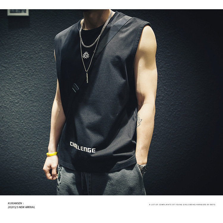 夏の純綿の袖なしtシャツベスト男性のゆったりしたファッションブランドinsカン肩半袖男子運動の大きいサイズの上着のファッション