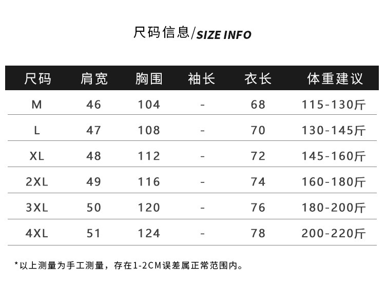 サイズ M 115斤-130斤,L 130斤-145斤,XL 145斤 ~ 160斤,2XL 160斤-180斤,3xl 180斤 ~ 200斤,4xl 200斤 ~ 220斤