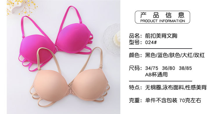 夏の露背下着女性無鋼輪前ボタンブラジャーセクシー美背クロス肩ベルト無痕ブラジャー工場現物