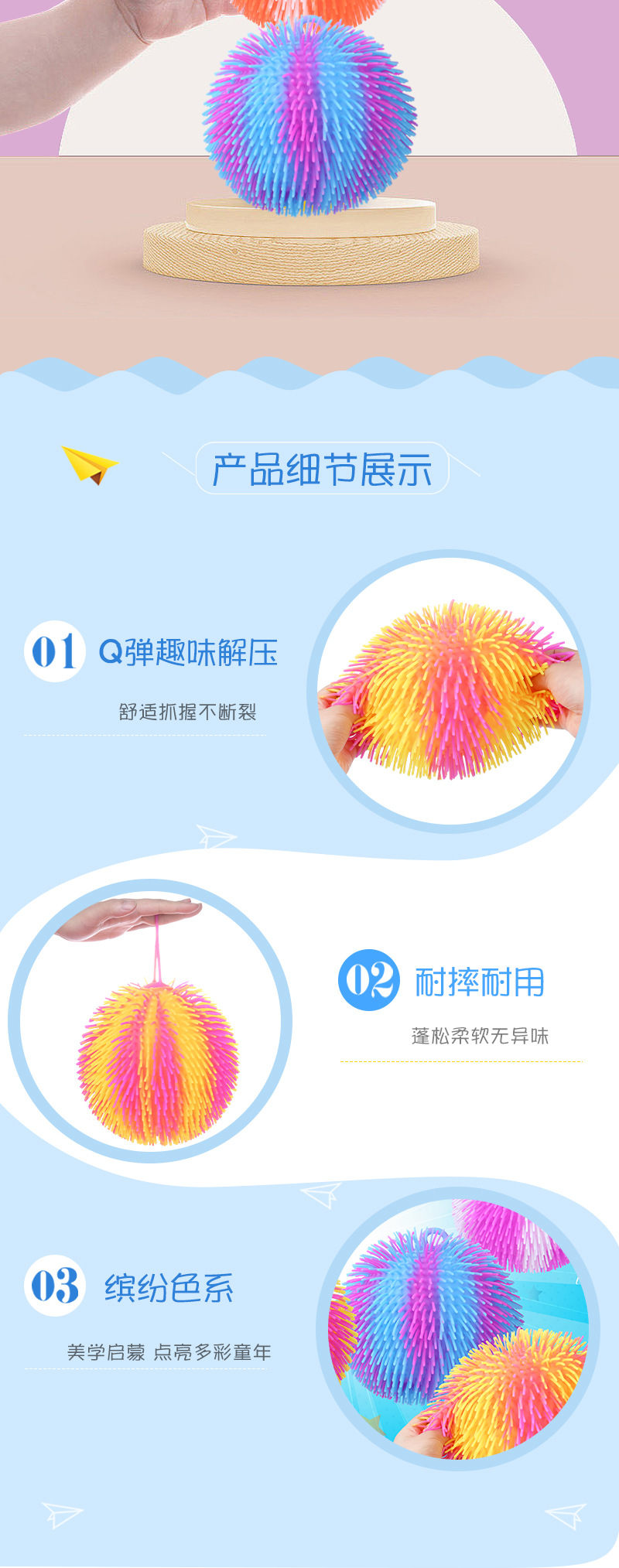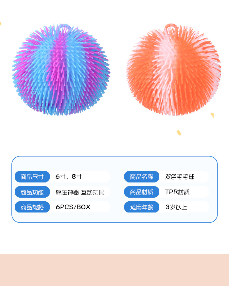 欧美商超跨境TPR大号pva解压毛毛球捏捏乐细毛球减压玩具专供出口