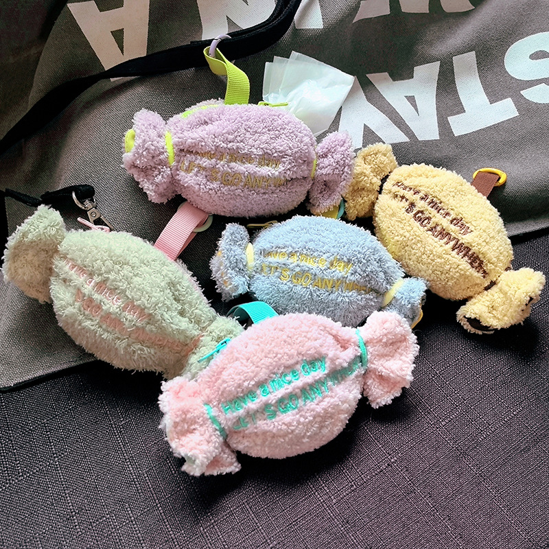 便携式拾便袋遛狗牵引绳挂包可爱糖果包垃圾袋收纳分配包宠物用品