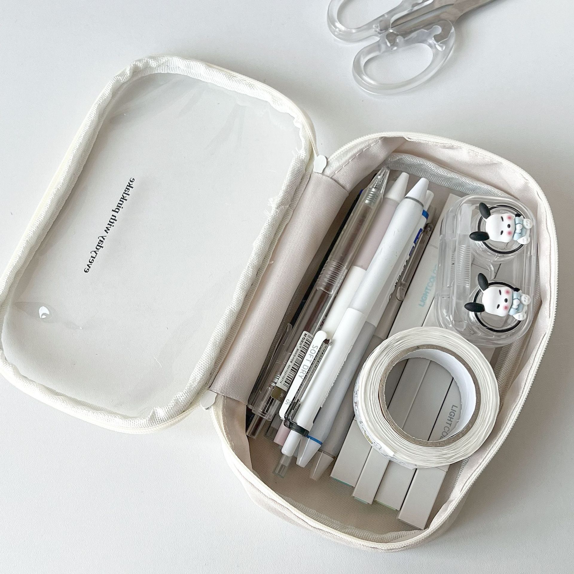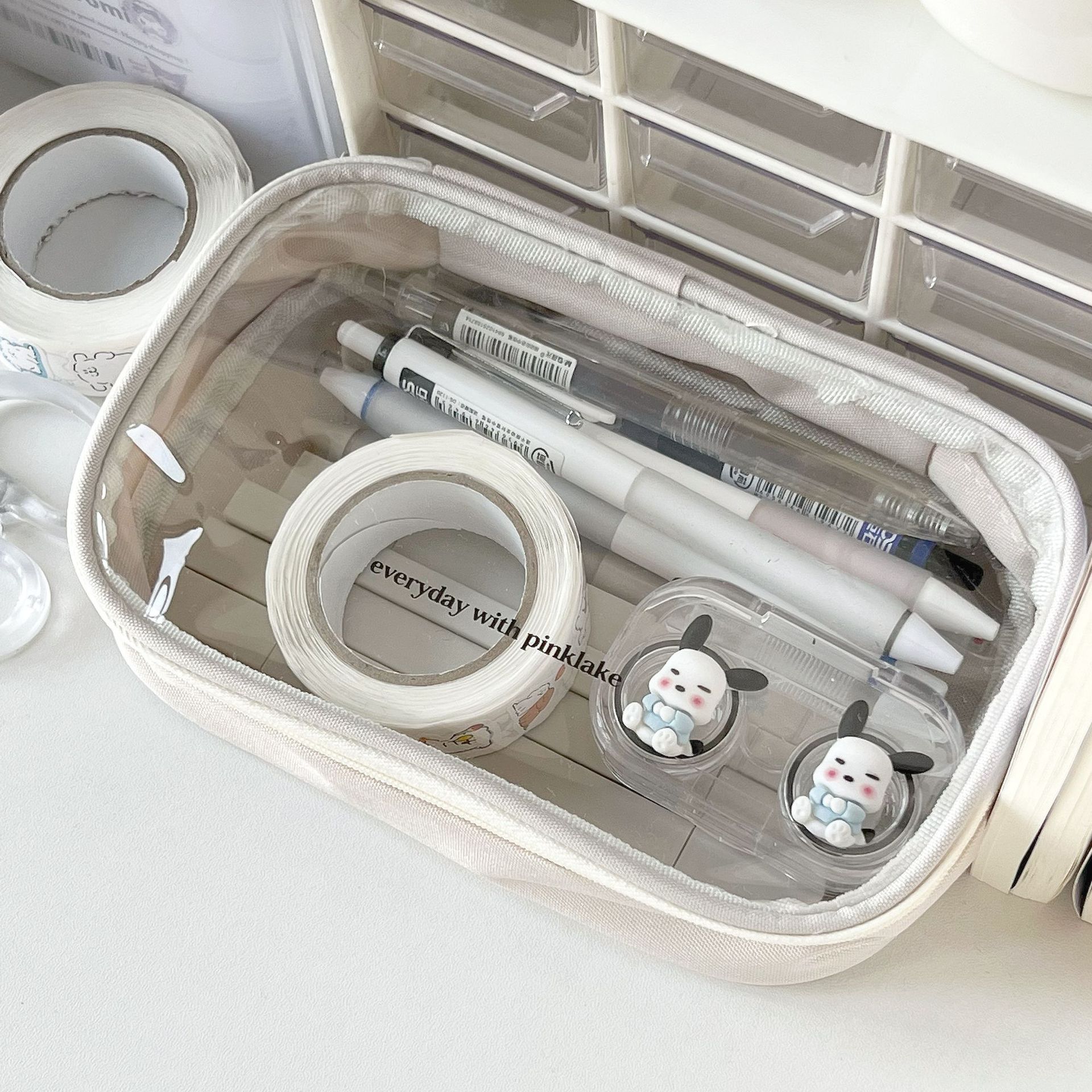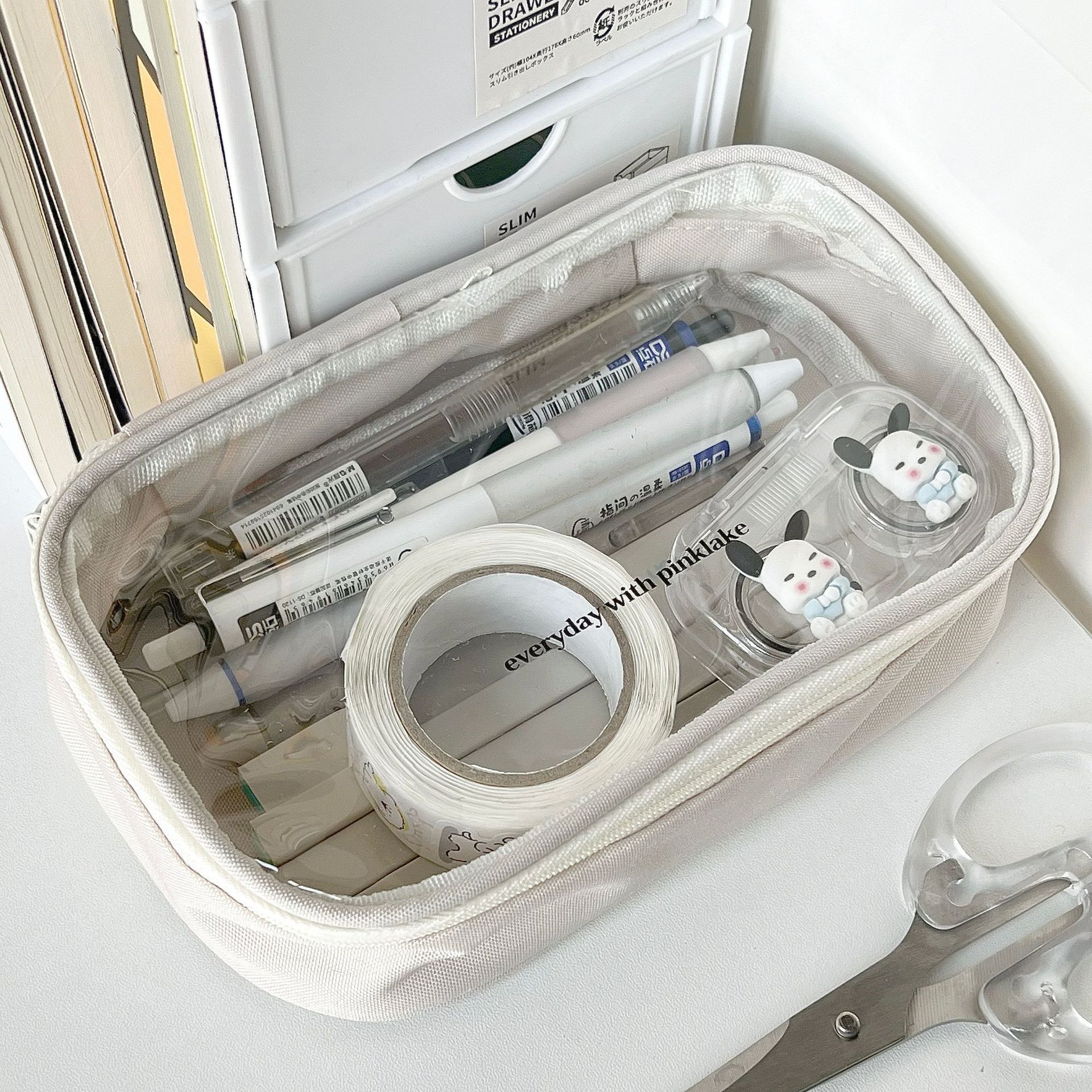 シンプル米白英語化粧バッグ家庭収納バッグins学生携帯純色透明pvcカバー小方バッグ