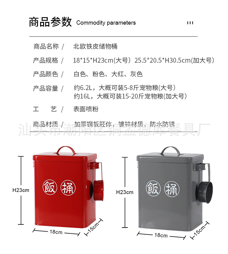 源工場金属米面犬の食糧桶赤Mホームキッチン共通防虫防湿高級品質ファッション