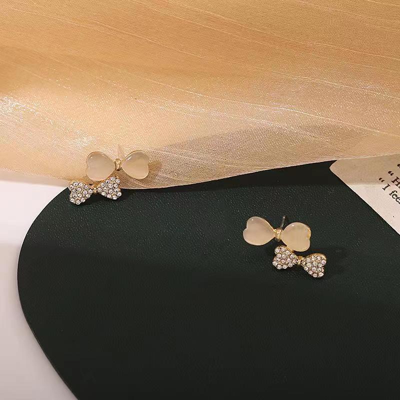 S 925銀針韓国版デザインの蝶結びが精巧で小さくて、個性的で高級感のある耳飾りです。