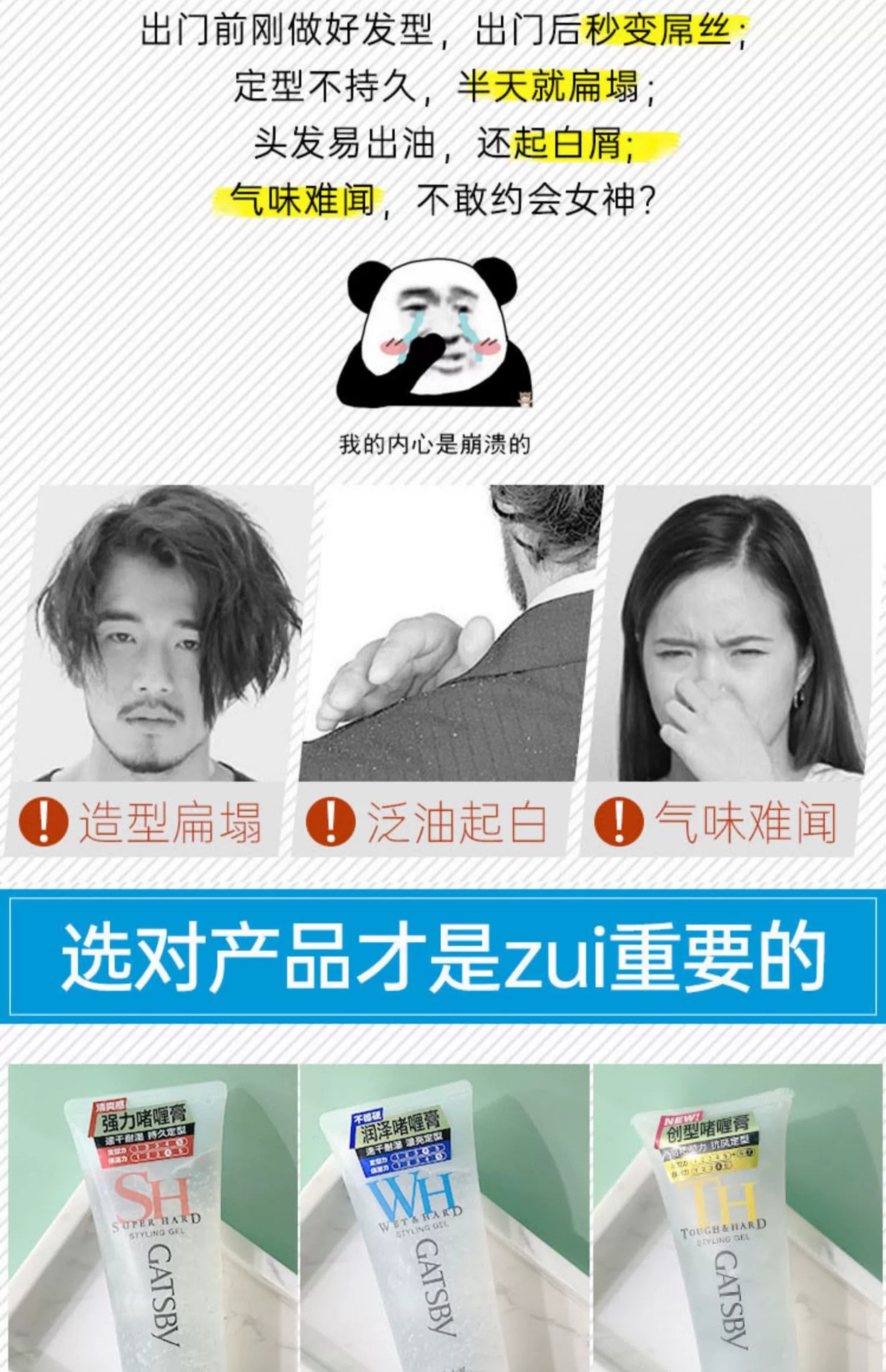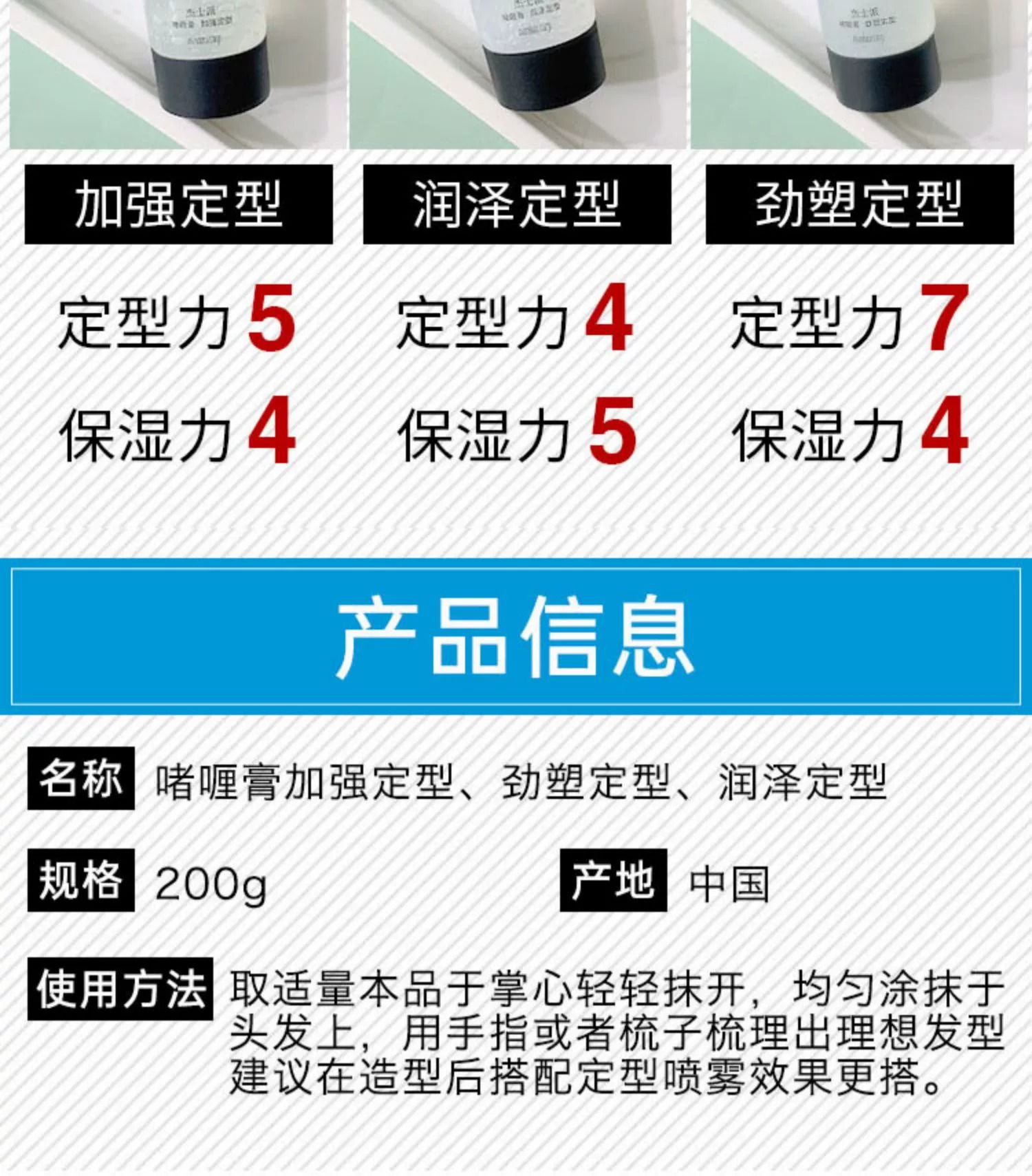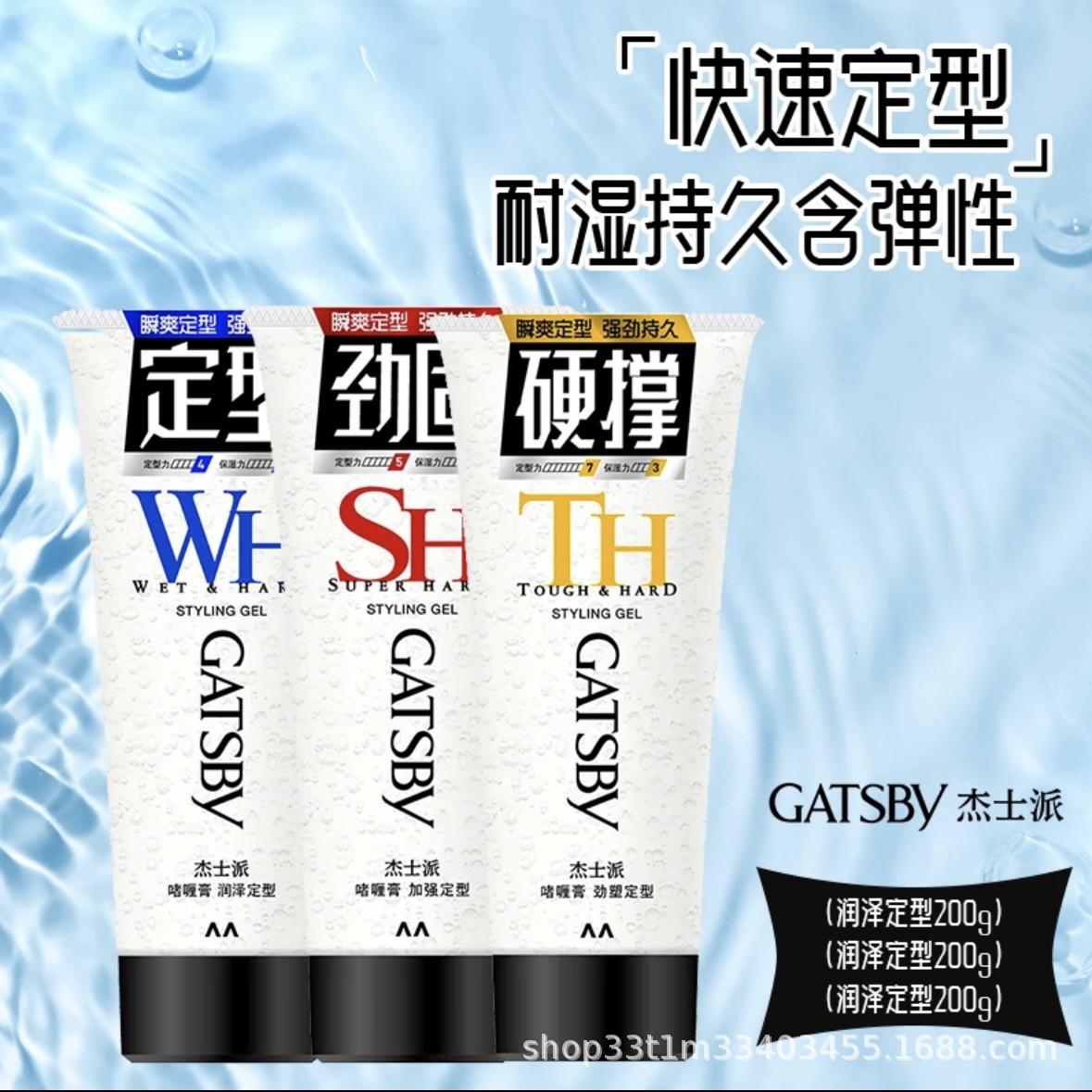GATSBY杰士派200g劲塑定型创型润泽啫喱膏强力男士背头拉丁发泥