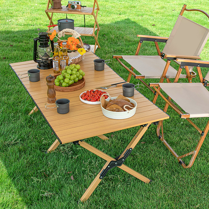 アウトドアキャンプ用エッグロールテーブル アルミ合金製折りたたみテーブル ポータブル 屋外 庭 ガーデン 屋外ピクニックテーブル バルコニー用品