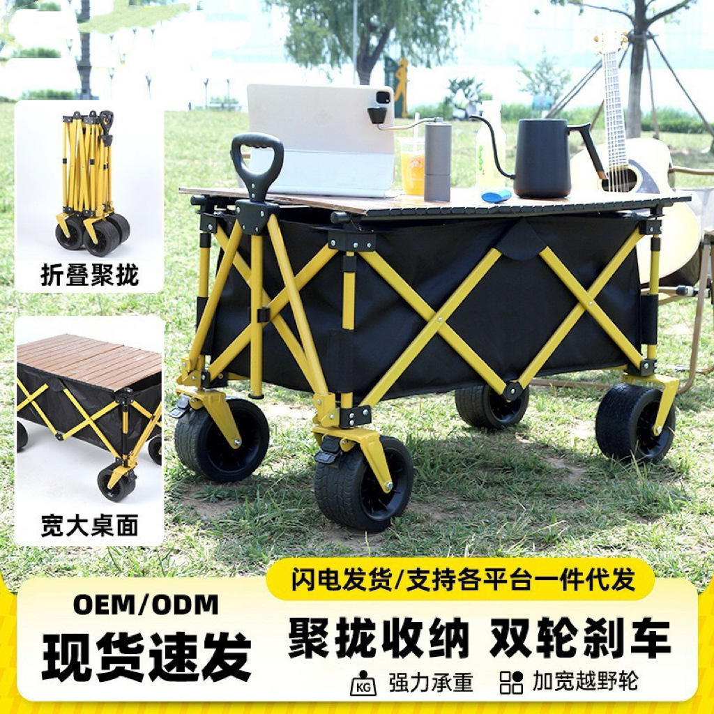 キャンピングカー屋外キャンプ折り畳み式トロリークロスカントリートロリー金属が集まってキャンプに出店してカートを卸売りします。