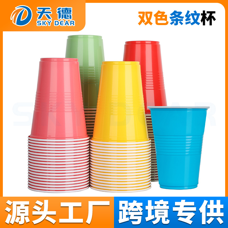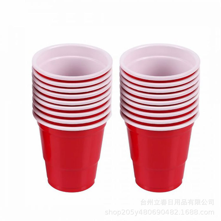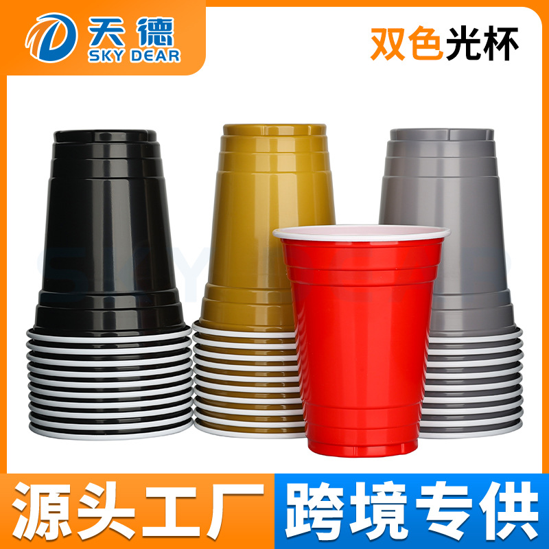 跨境专用直供一次性双色杯16oz一次性塑料杯beer杯乒乓游戏杯派对