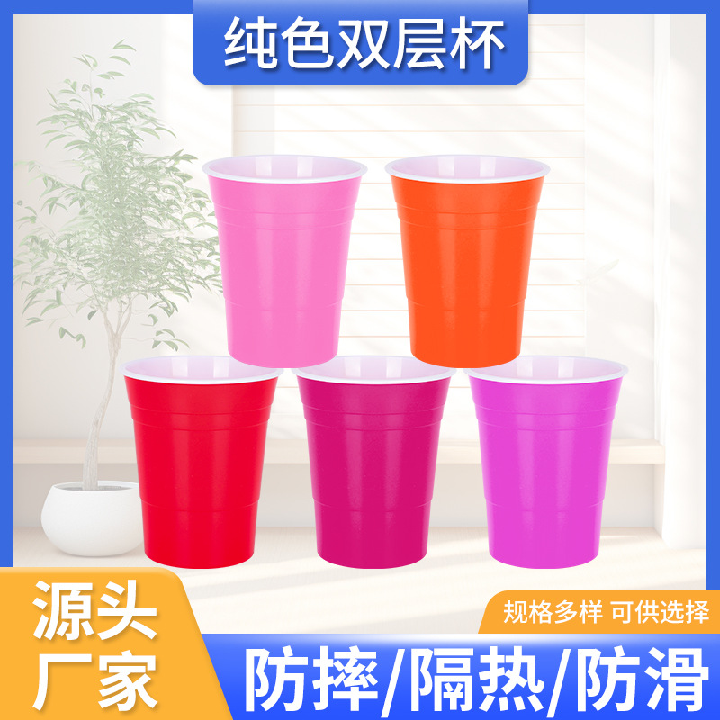 家庭用パーティーゲームプラスチック大容量二層カップPP純色カラー大口径ビール飲料ストレートカップ