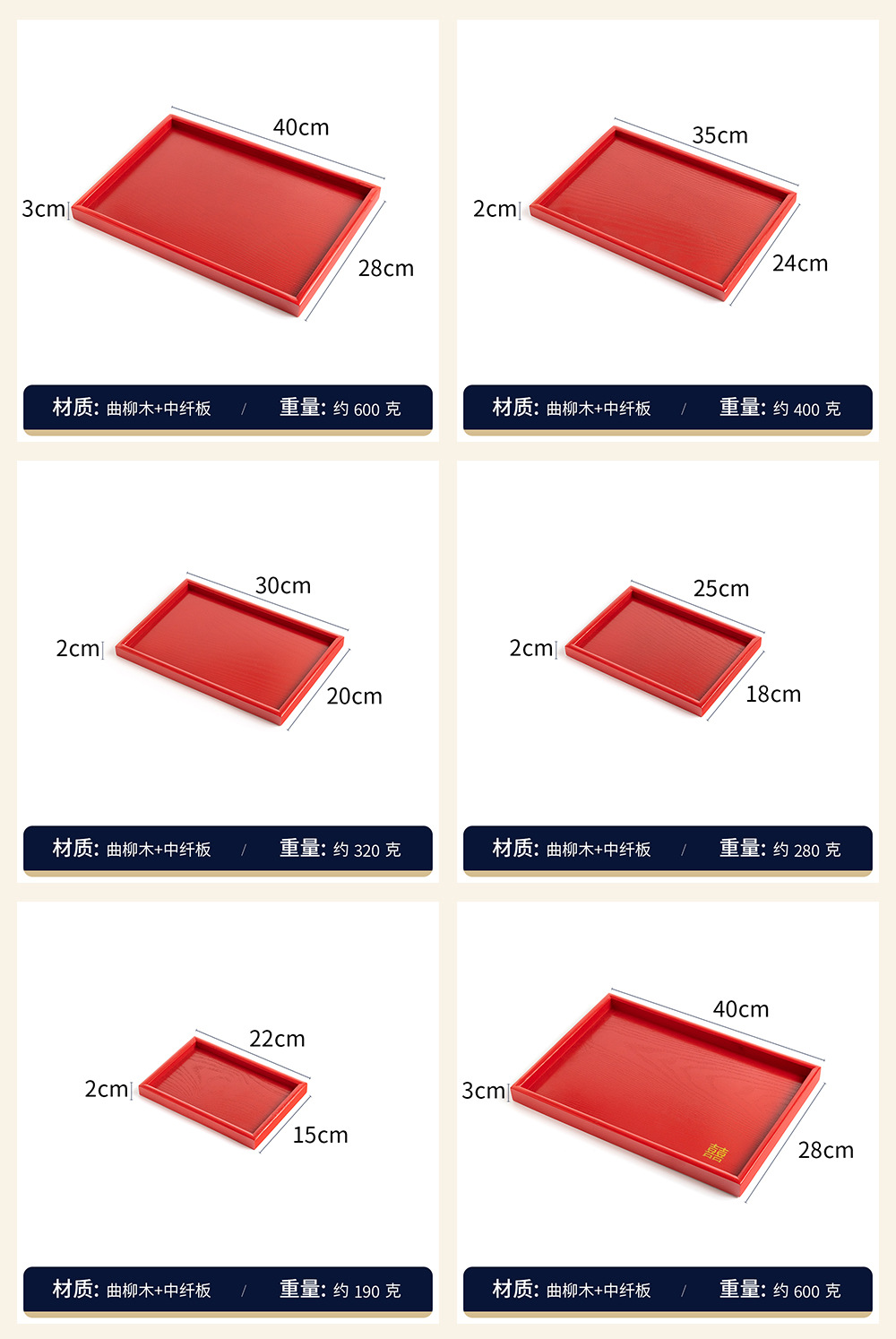カラー 実木赤色トレイ40*28*3,実木赤色パレット35*24*2,実木赤色トレイ30*20*2,実木赤色トレイ25*18*2