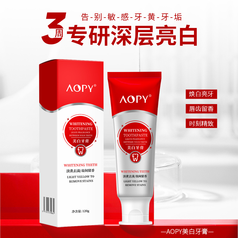 Aopy美白歯磨き粉は黄亮白を取り除いて歯にきれいな息をつけて清潔な口腔保護の歯茎の黄色の歯の通用する家庭服を取り除きます。