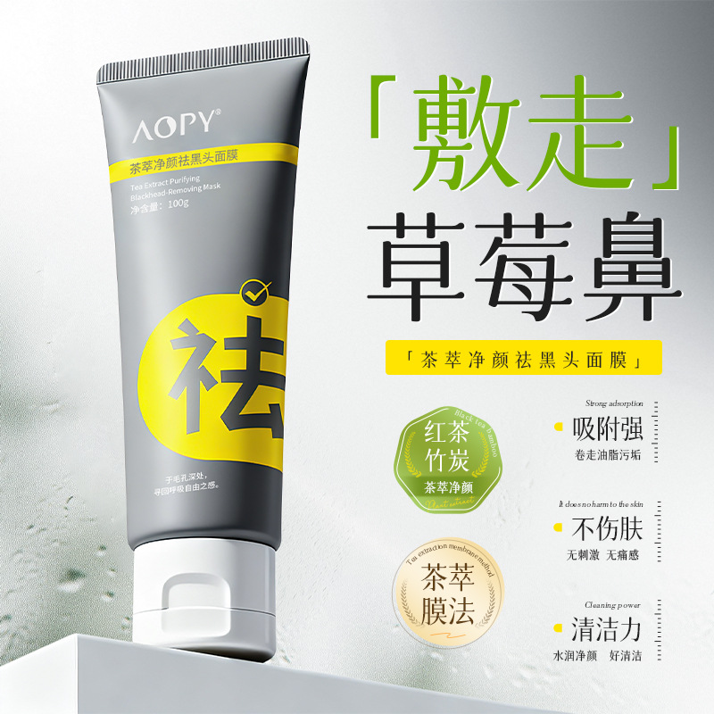 AOPY茶萃净颜祛黑头面膜深层清洁毛孔吸附白黑头祛草莓鼻撕拉面膜