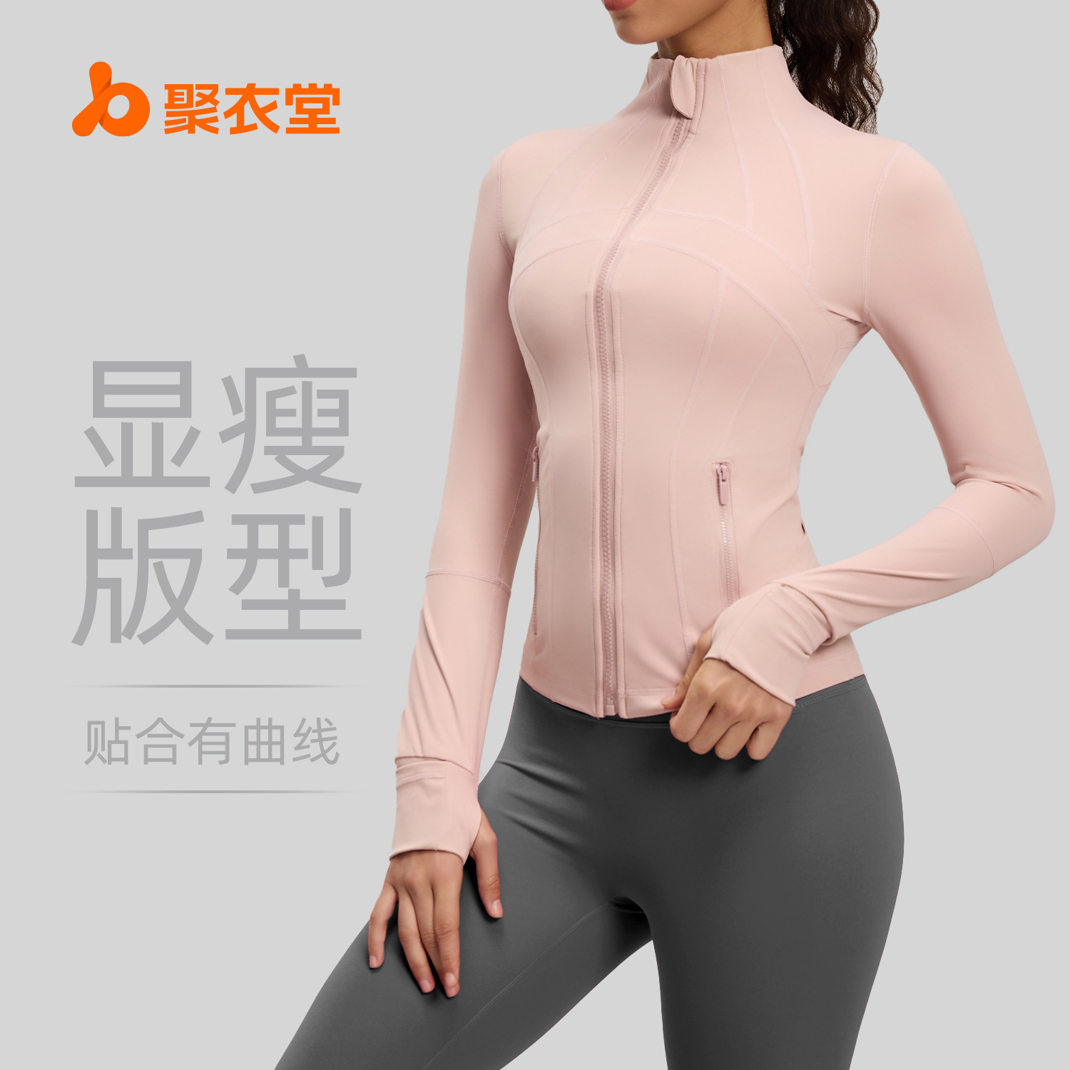 聚衣堂の新型ヨガ服の女性ファスナー運動コートはタイトで痩せています。長袖ランニングトレーニングフィットネス上着です。